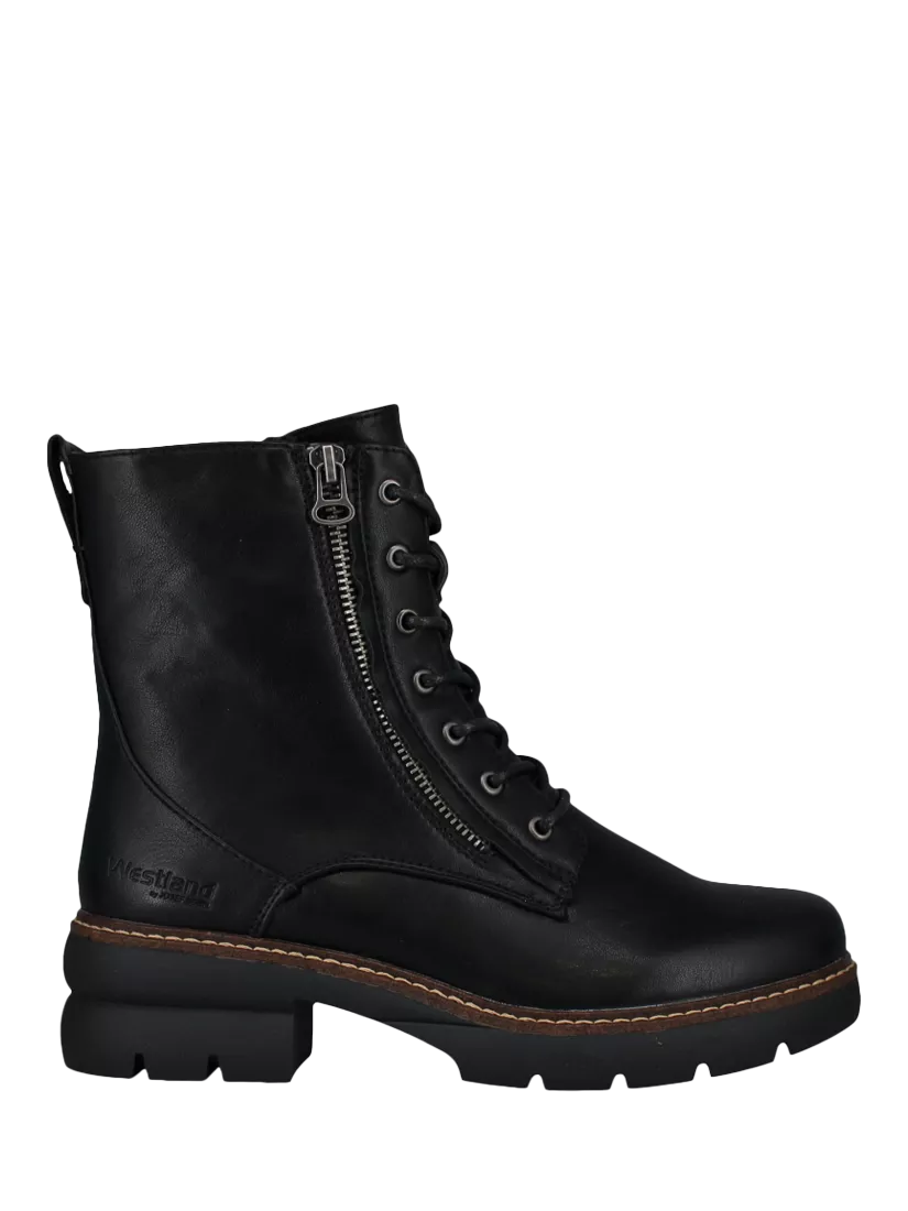 Westland by Josef Seibel's Perrie 03 lace-up boot boasts a functional side zip and a unique aesthetic touch in the form of contrast stitching at the midsole.