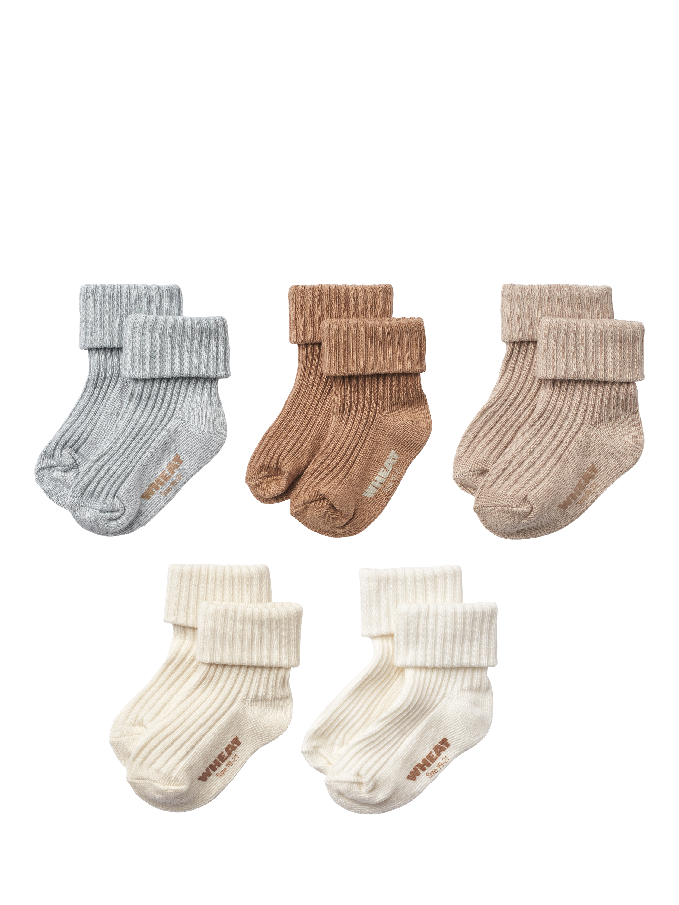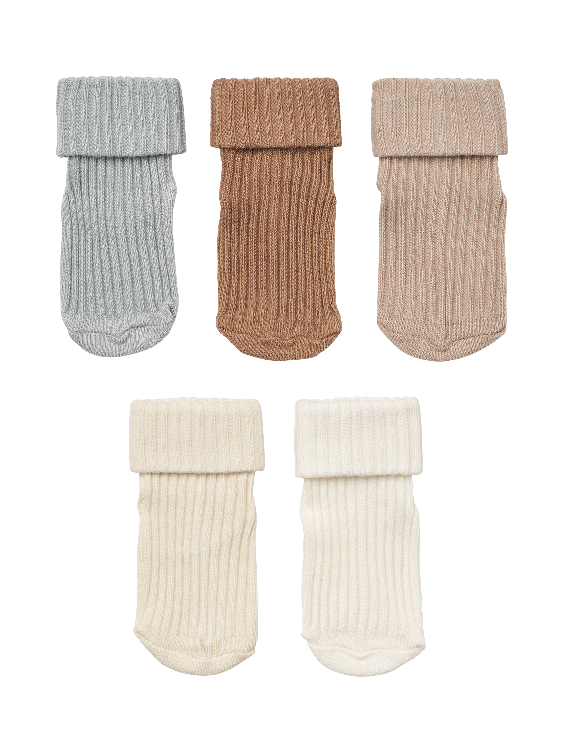 Soft organic cotton ankle socks in rib pattern, ideal for daily use. Comes in giftbox with 5 shades, perfect for babies' wardrobes. Comfortable and stretchy.