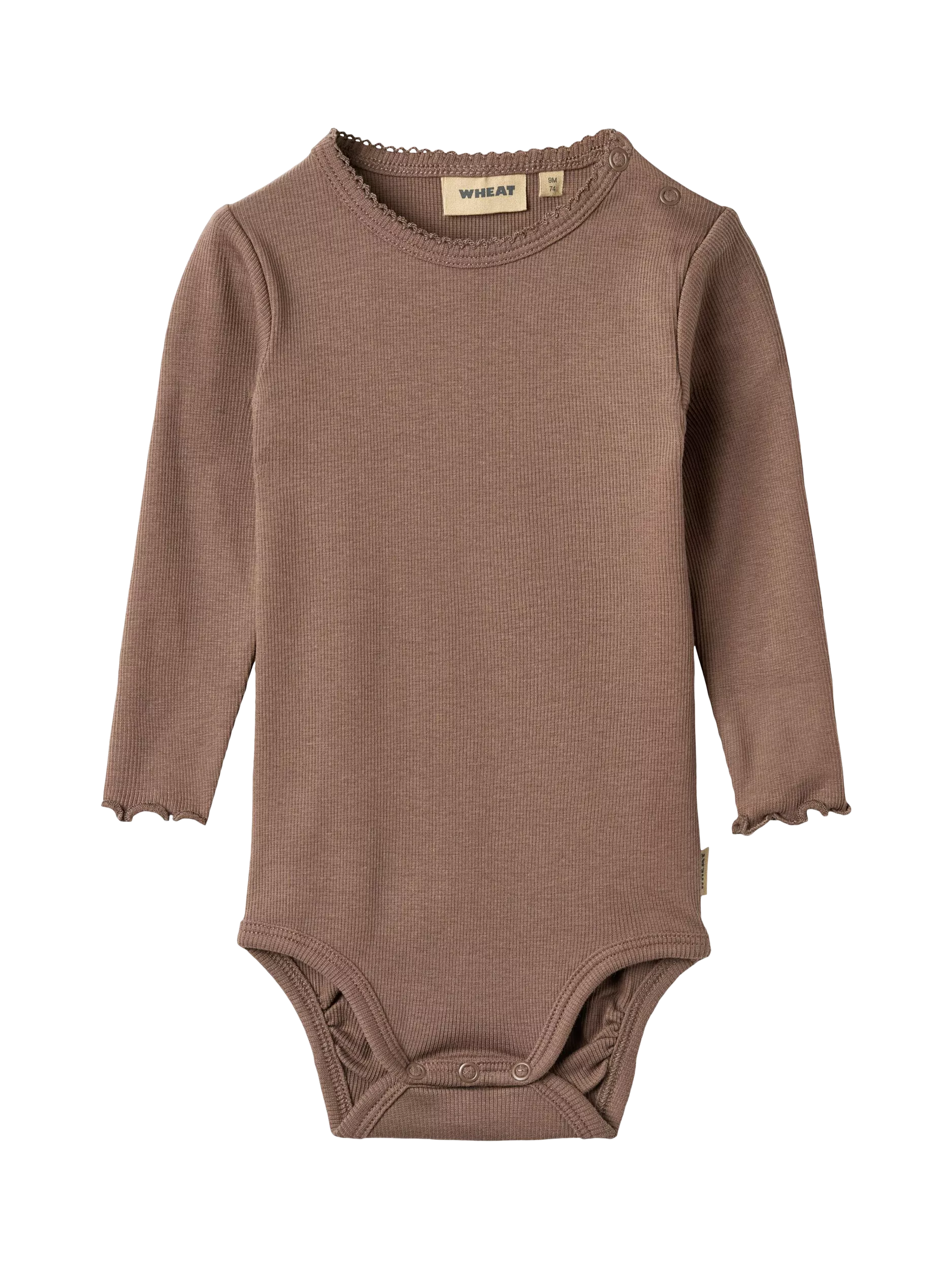 Long-sleeved rib body in soft organic cotton for babies. A unisex essential that can be worn on its own or as a layering piece. Easy to dress with press buttons at the shoulder and bottom for quick nappy access.