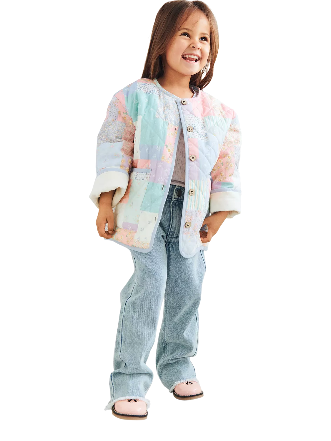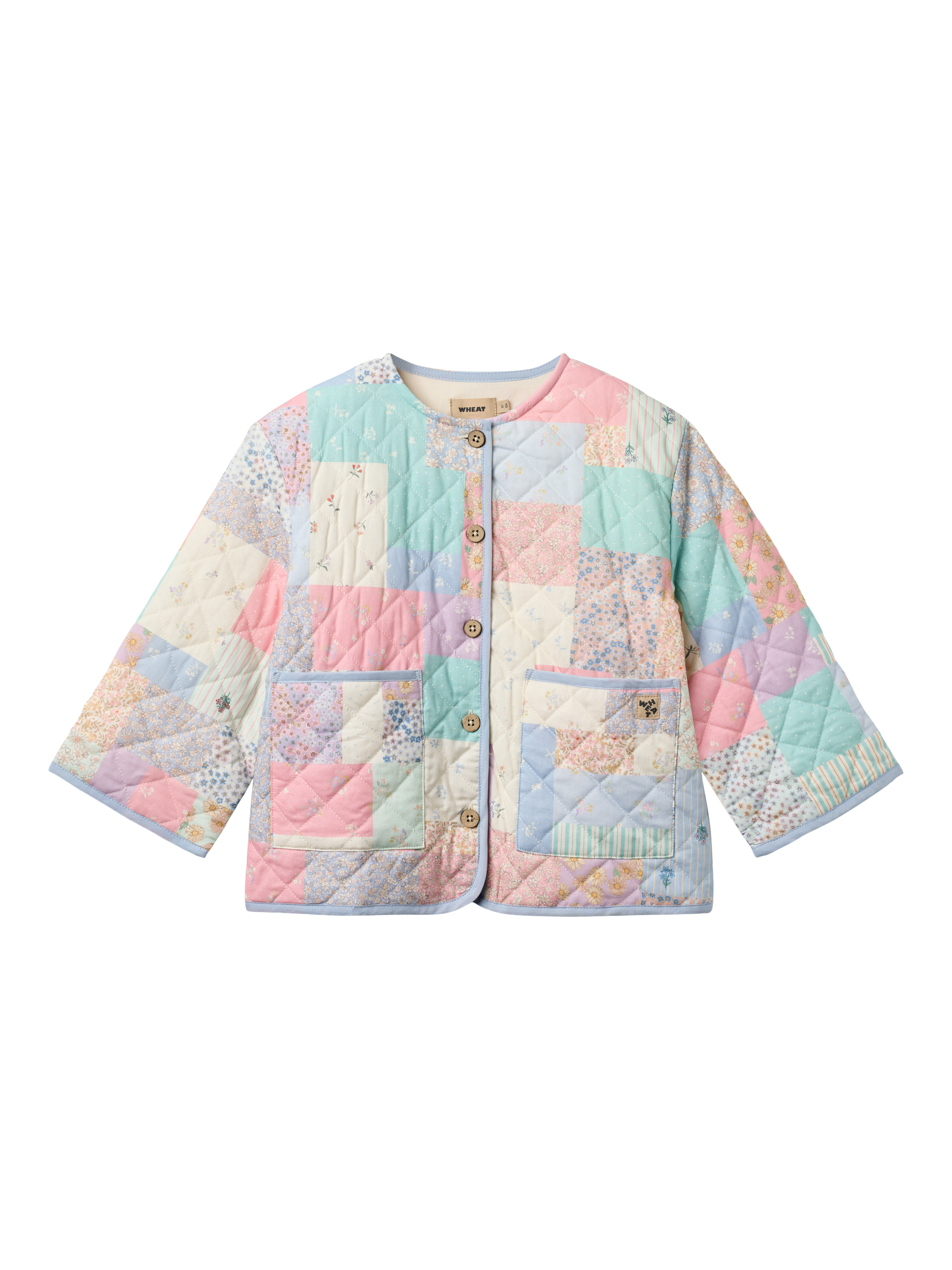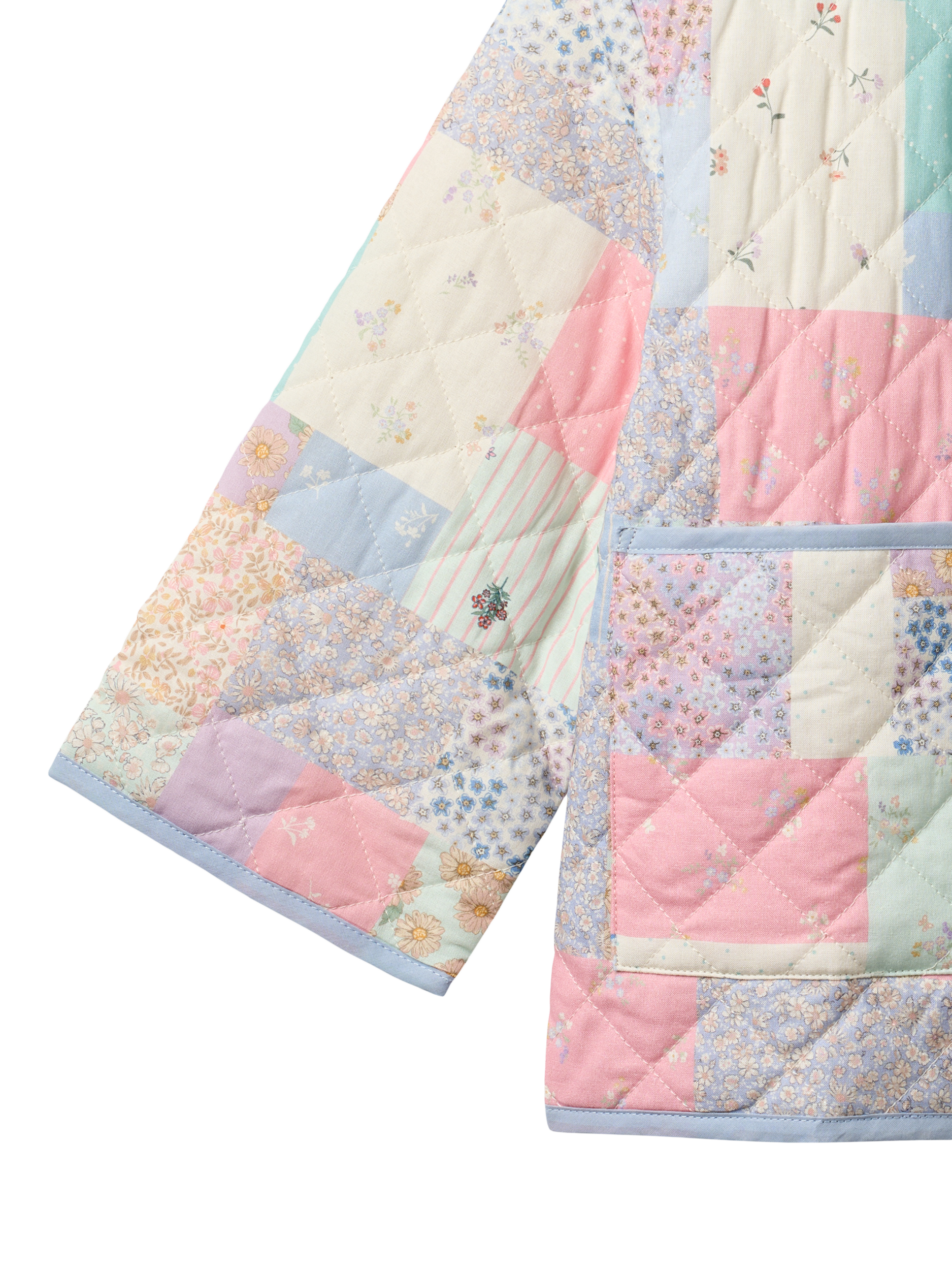 Long-sleeved quilted jacket, crafted in cotton with a signature printed patchwork. Designed in a loose fit with large patch pockets, front buttons, edge band details, and a patch label. The quilted fabric and hand-drawn patchwork give it a classic, charming look. A versatile layering piece for any wardrobe.