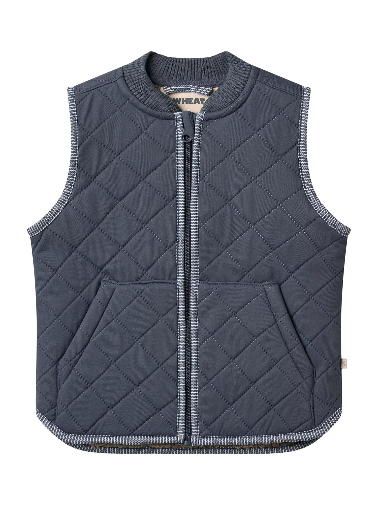 A cosy thermo gilet designed for children, perfect for layering in transitional weather Featuring a rib collar and zipped fastening.