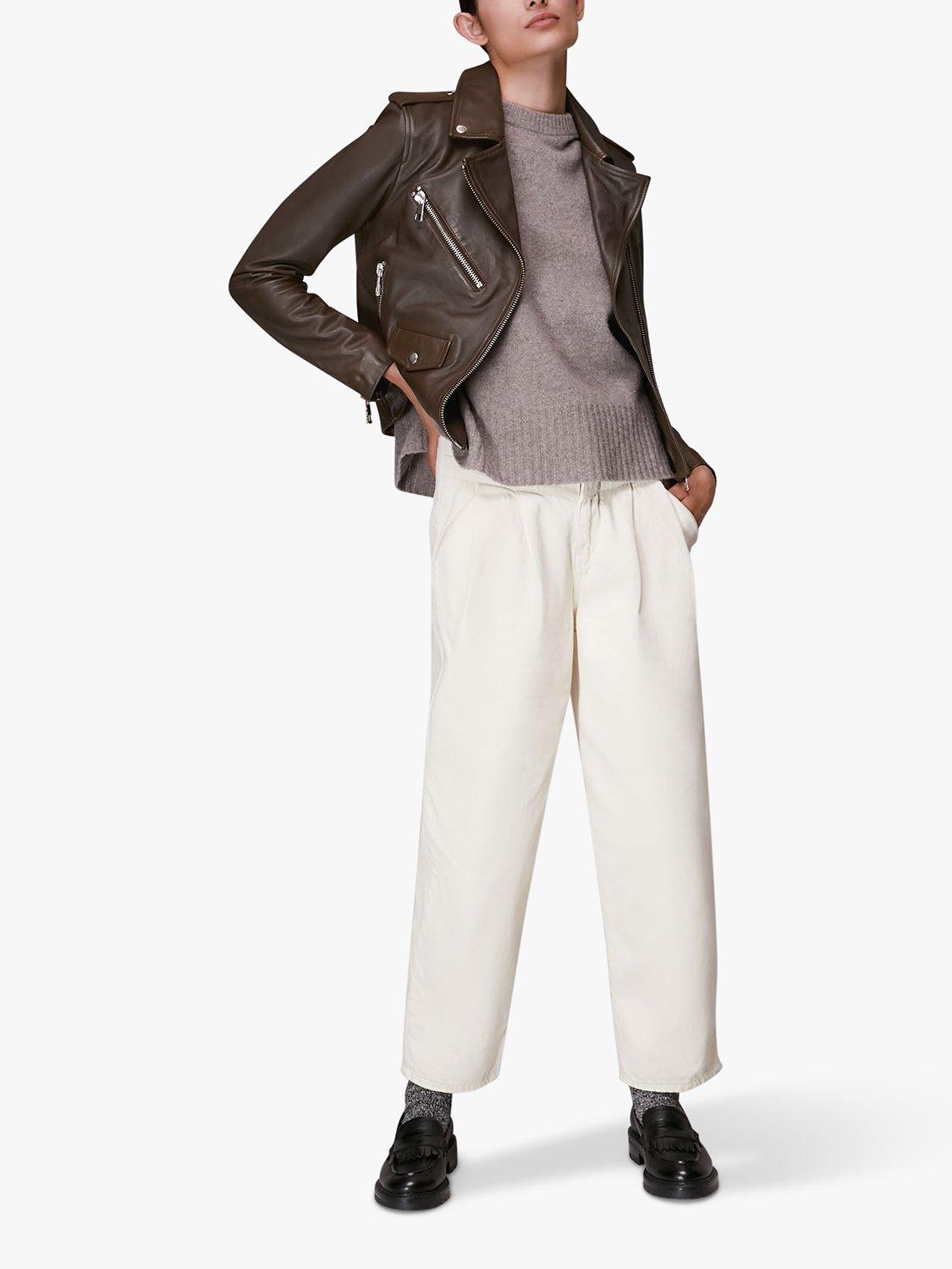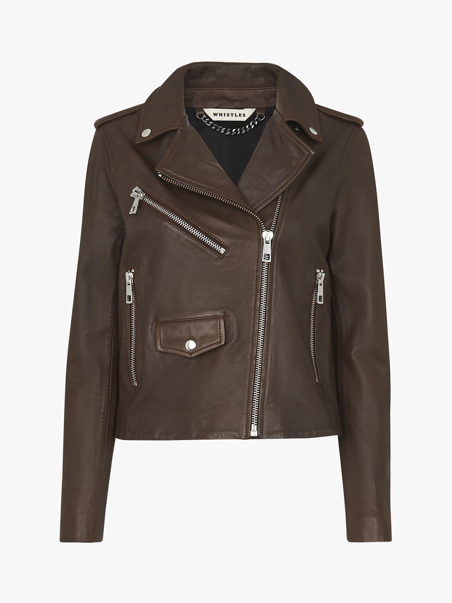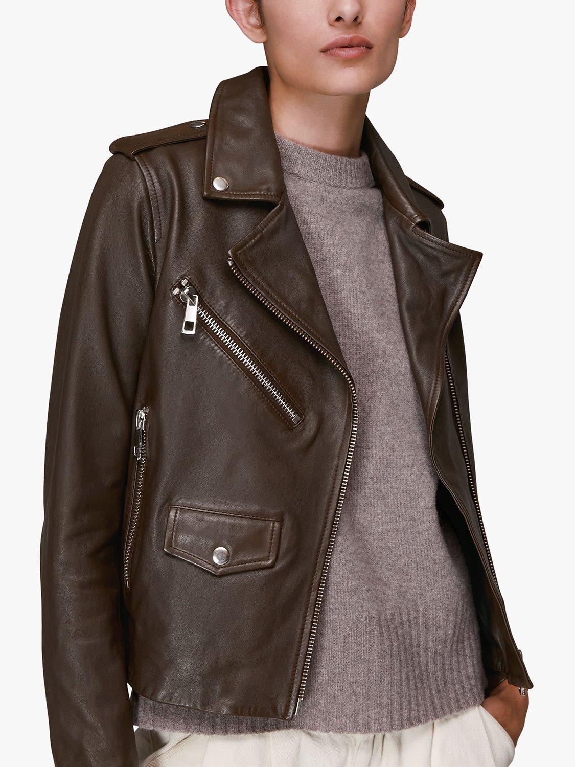 WhistlesAgnes Leather Biker Jacket, Chocolate