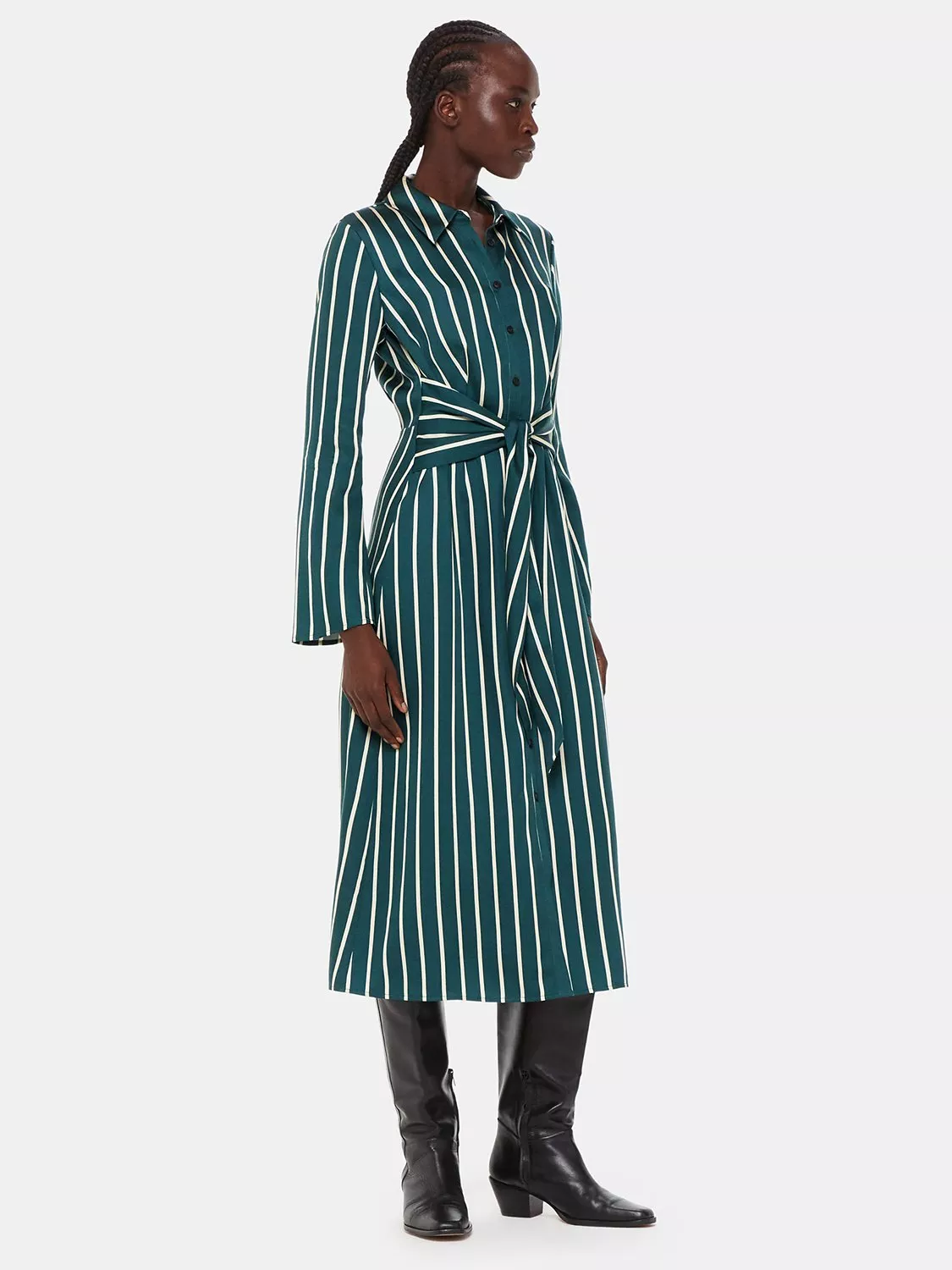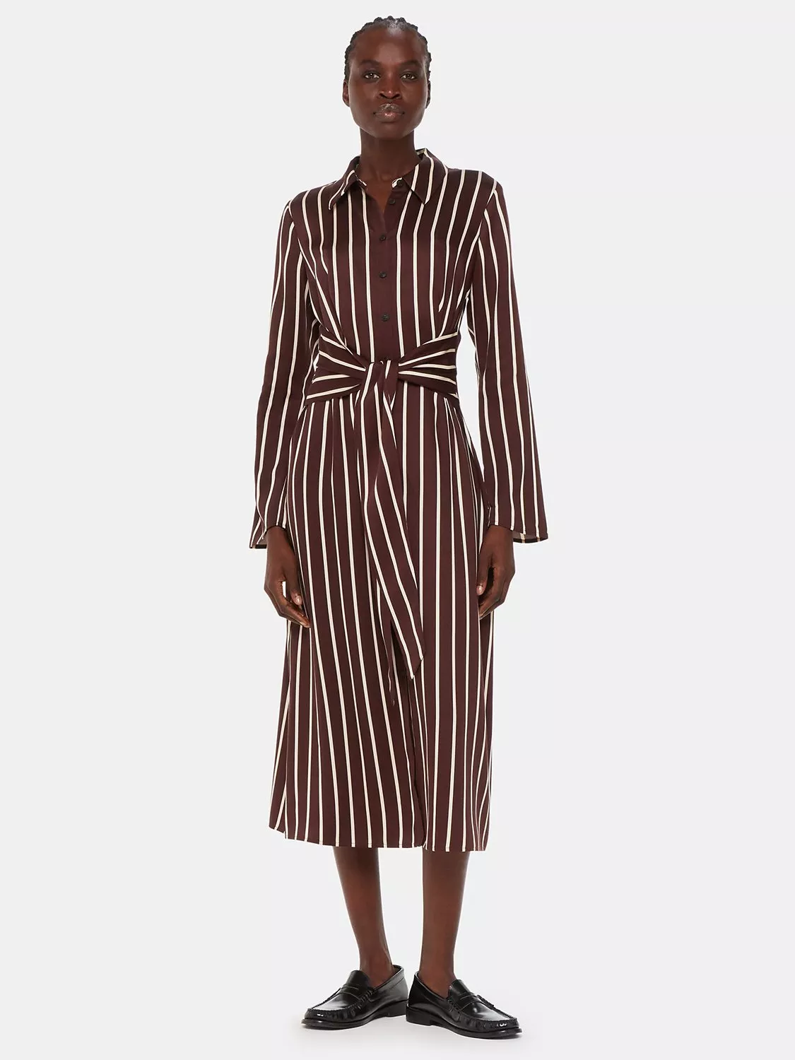 Sure the become one of the hardest working pieces in your wardrobe, this midi dress from Whistles is made with longevity. Smartened with a collar neckline, full-length sleeves and a self-tie knot waist, this style redefines your collection with simple stripes.