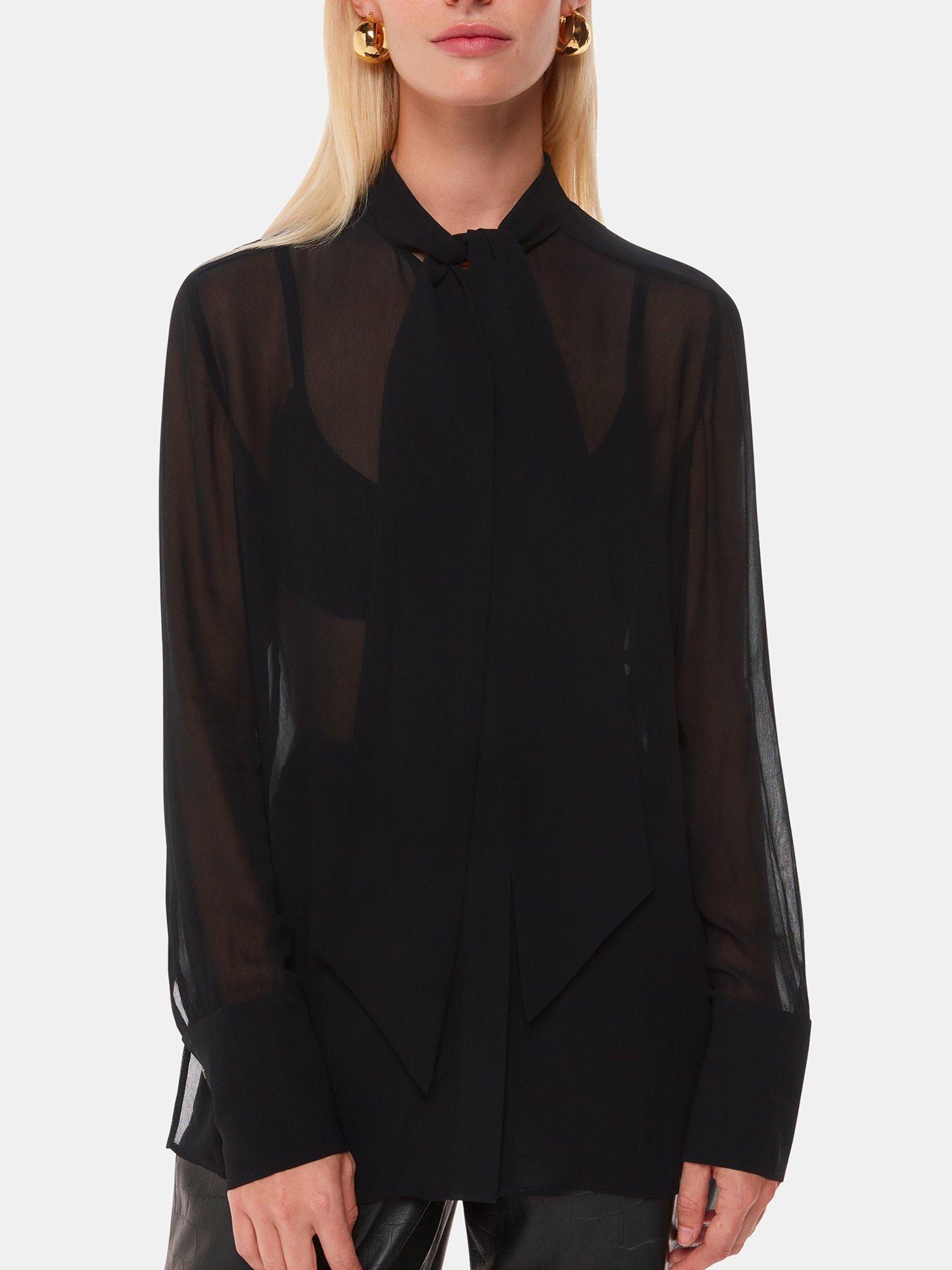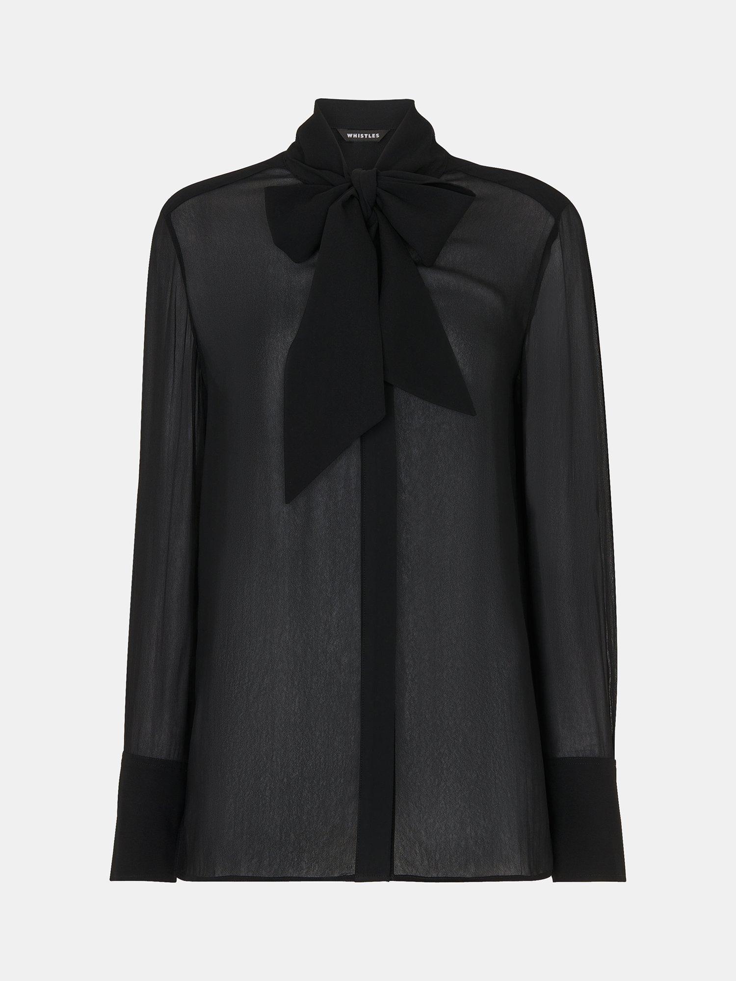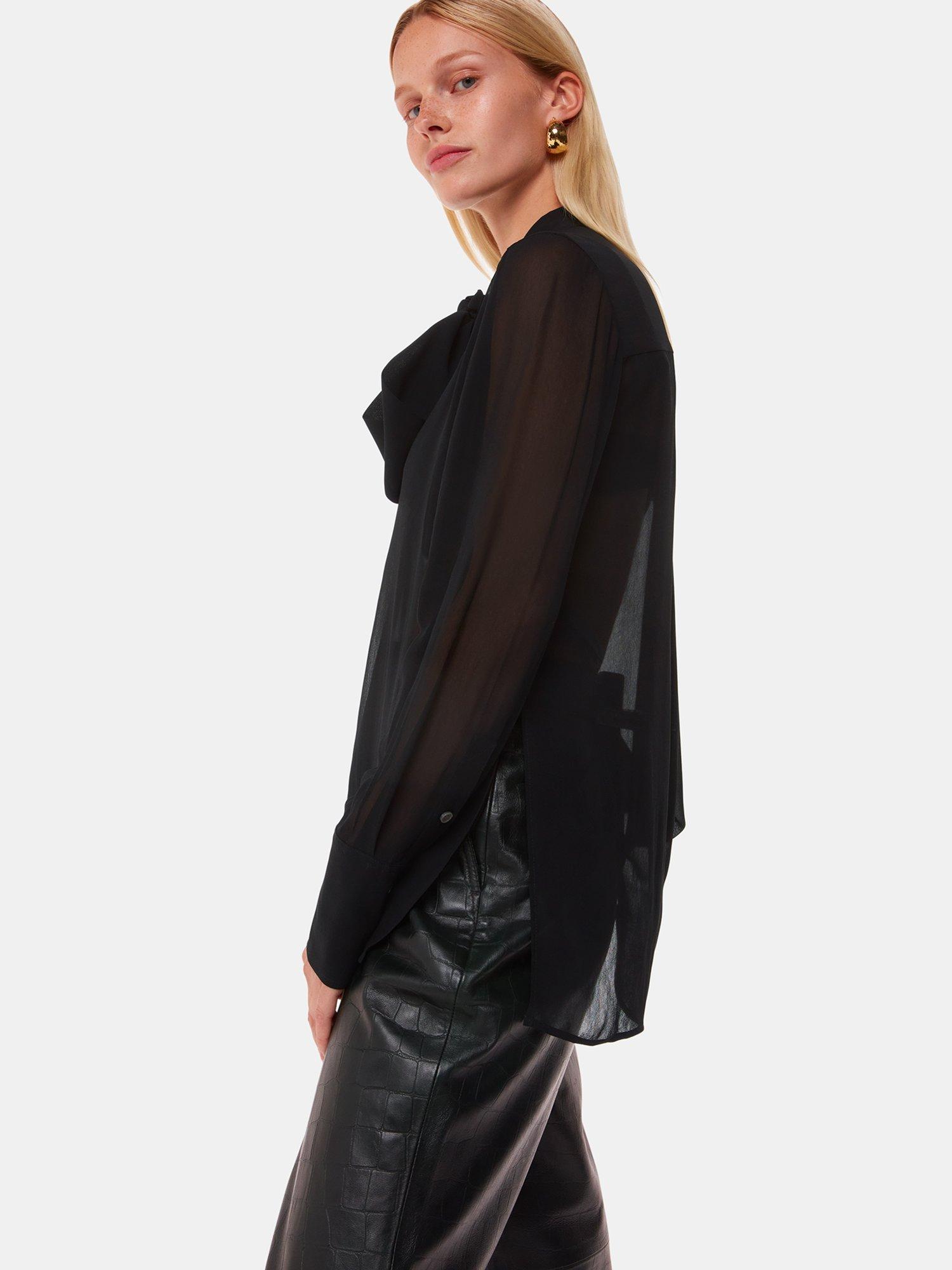 Bringing a neat addition to your wardrobe, this sheer blouse from Whistles features an oversized tie neckline.