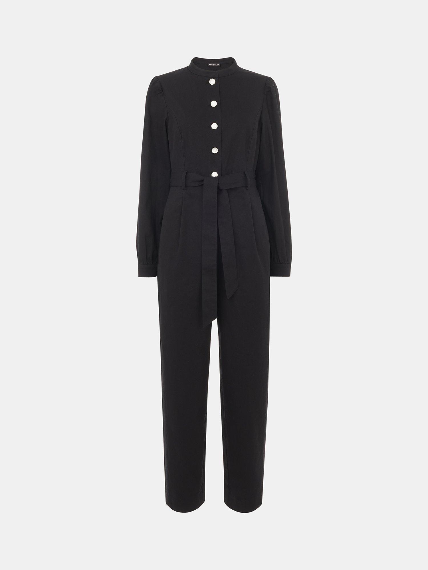 With a cosy funnel neck and long sleeves, this self-tie belt jumpsuit from Whistles falls straight through the legs and offers light, airy wear thanks to its pure cotton composition.