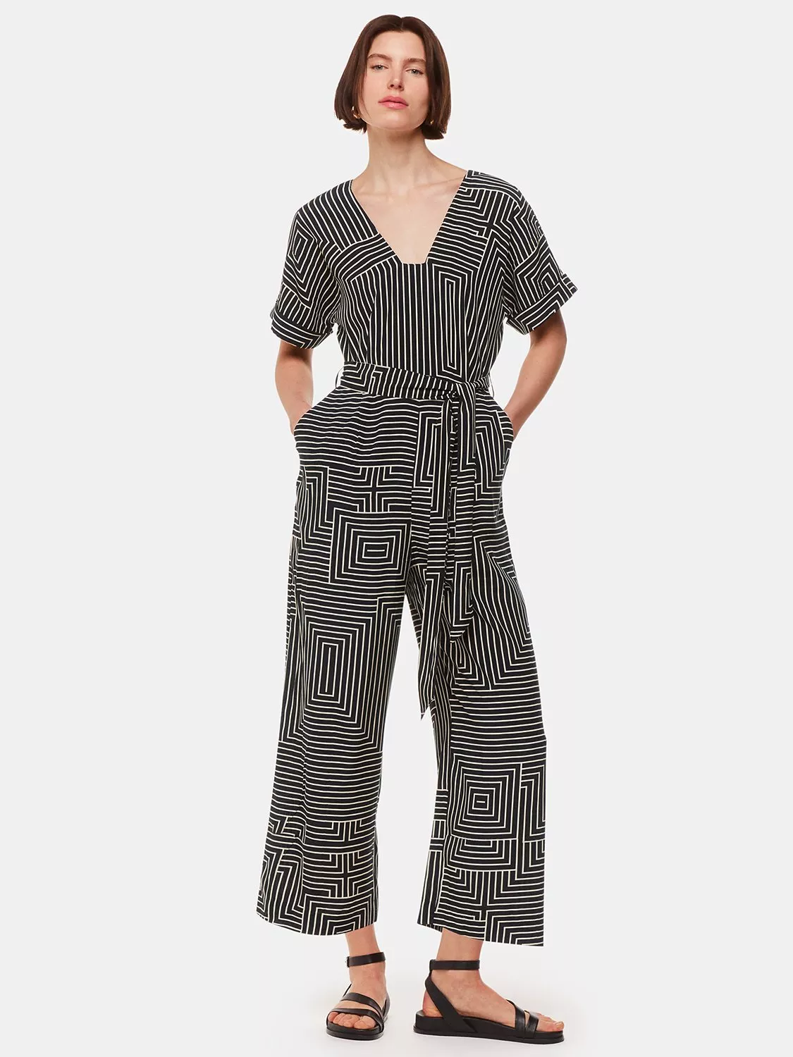 With a plunging v-neck and short sleeves, this jumpsuit from Whistles falls straight through the legs and is made from a breezy viscose blend.