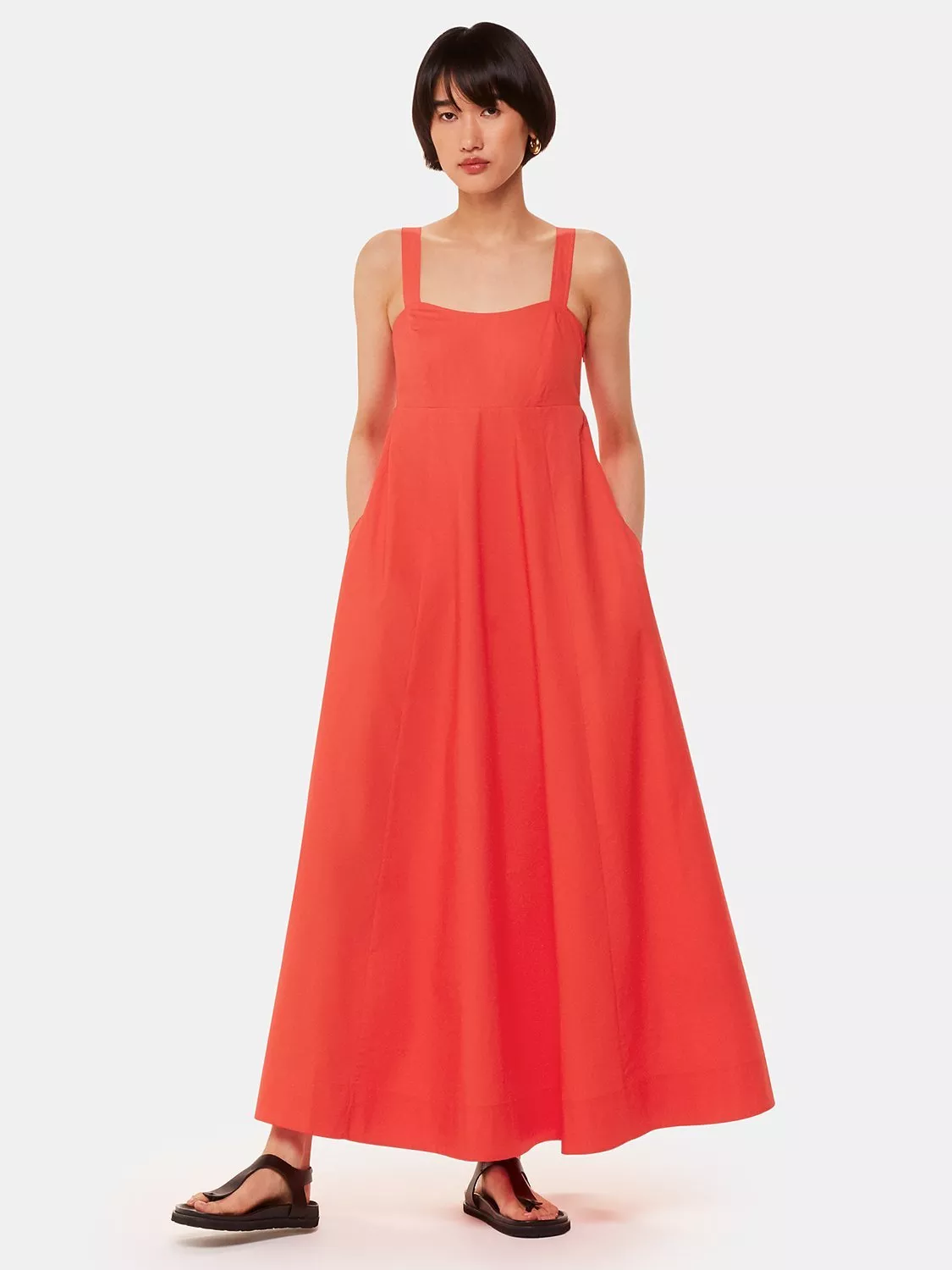 Cinching your shape with an empire waistline, this maxi dress from Whistles comes in featherlight cotton. Carved out with a boxy square neck, this style redefines your collection with the minimum of fuss.