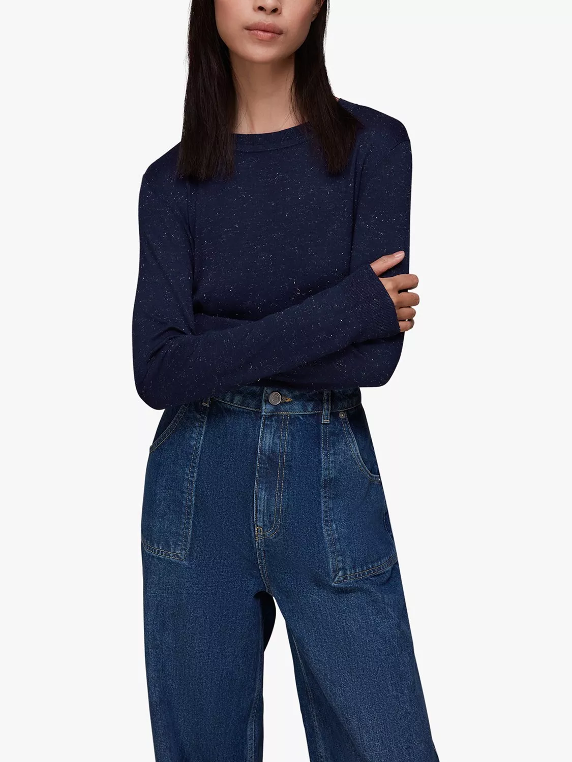 Simple yet sleek with a crew neckline, this lightweight jumper by Whistles is made from a light and fluid blended fabric with a hint of sparkle.