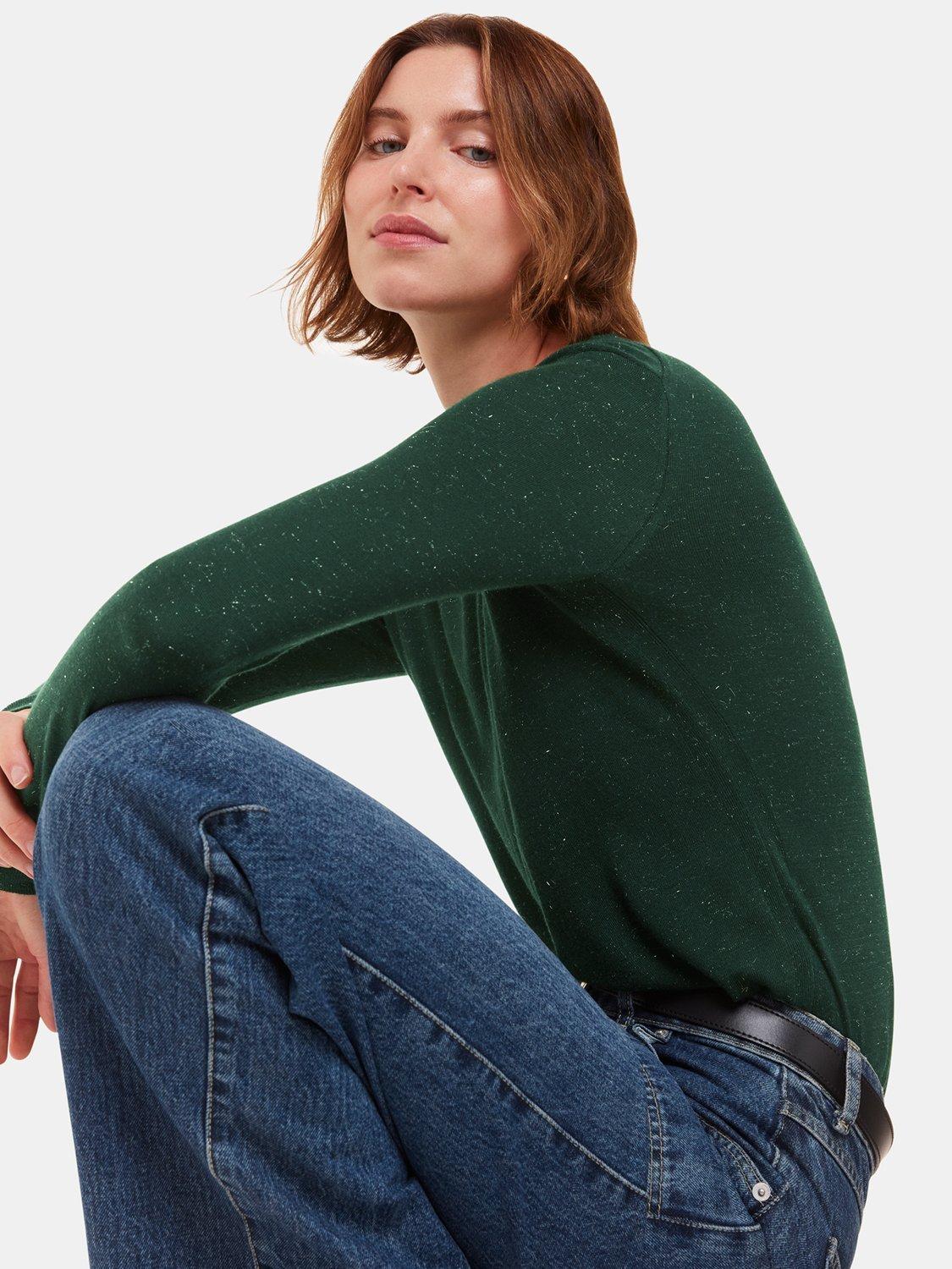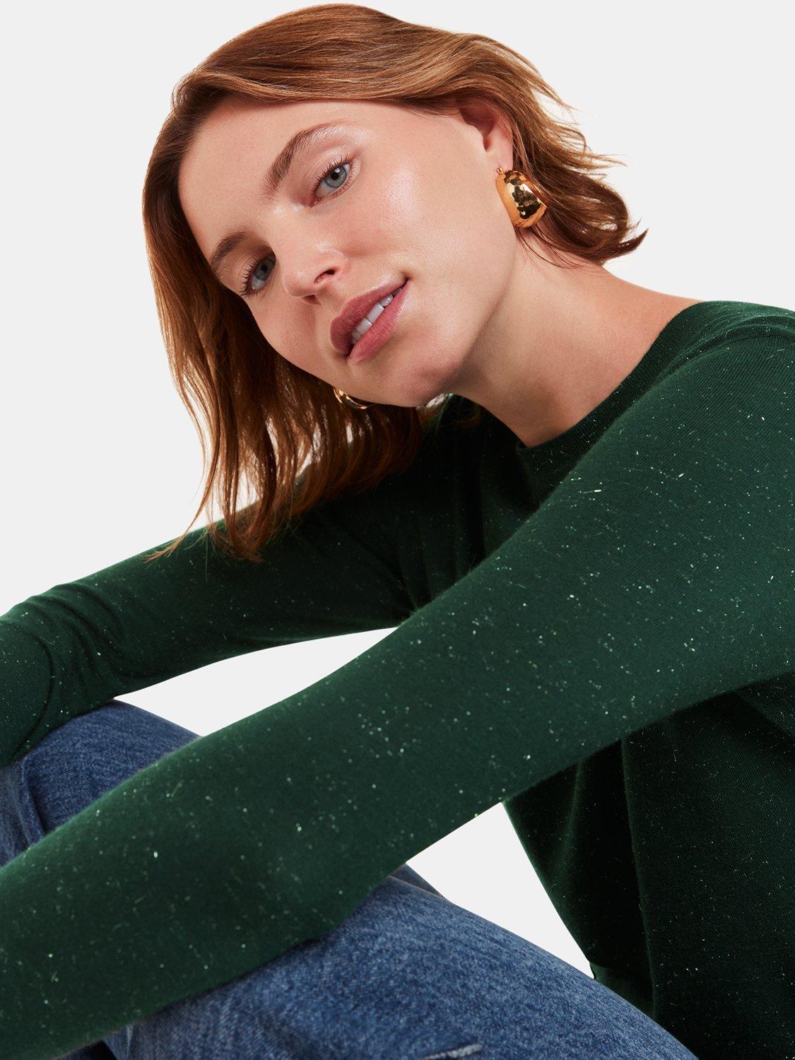 WhistlesAnnie Sparkle Crew Neck Jumper, Dark Green