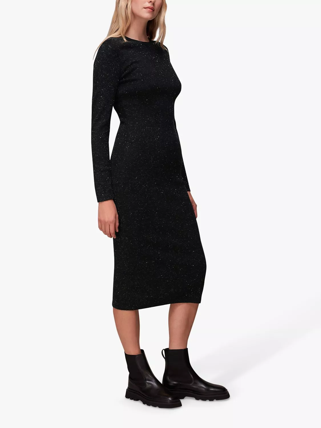 Carving a defined silhouette in a comfortable jumper design, this midi dress by Whistles is a muted, yet chic addition to your repertoire.