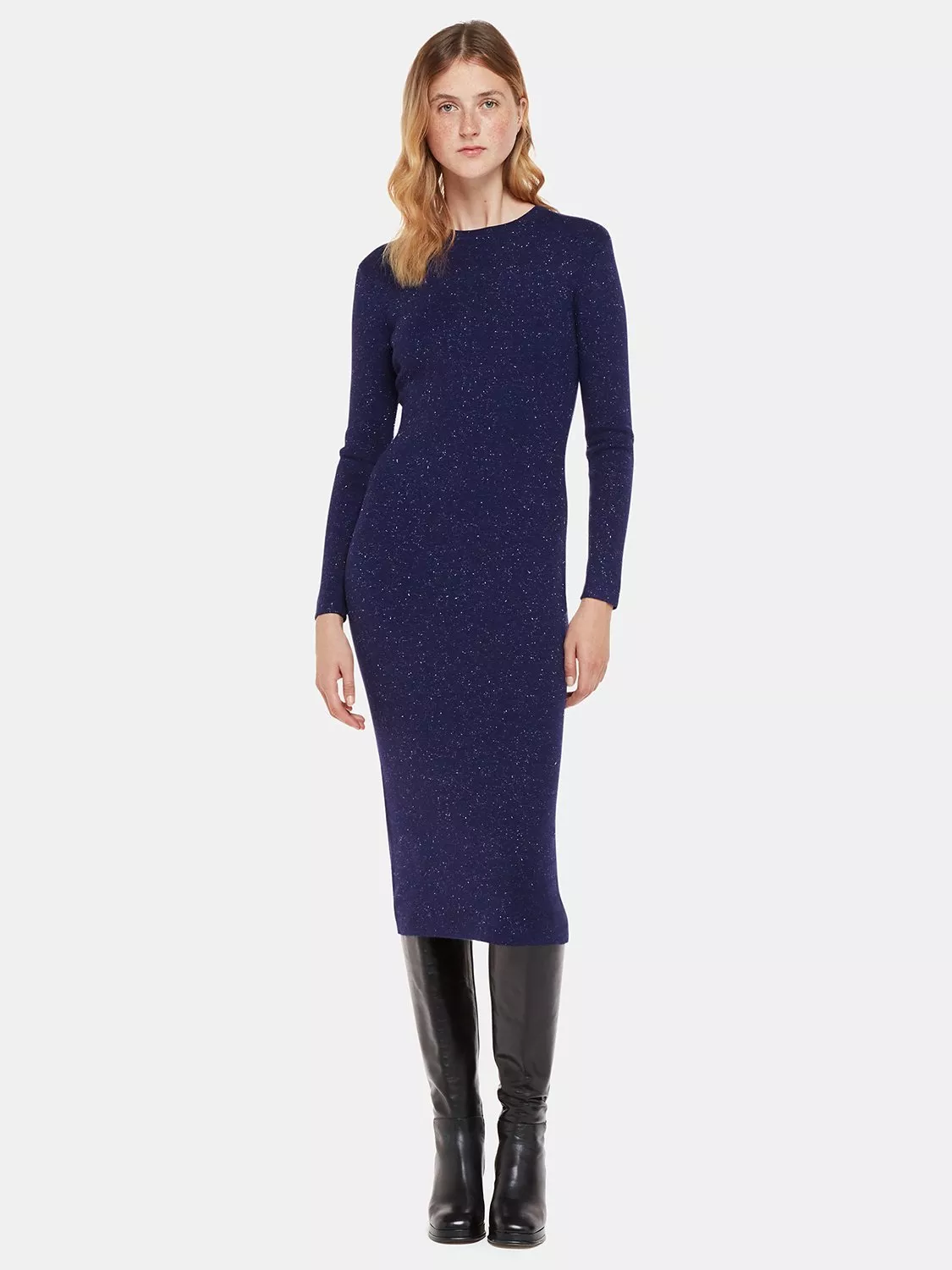 In a simple but effective bodycon fit, this mid-length dress from Whistles is dreamt up from a whisper-weight viscose blend. With a simple crew neck and long sleeves, it comes in a profusion of twinkling embellishments.