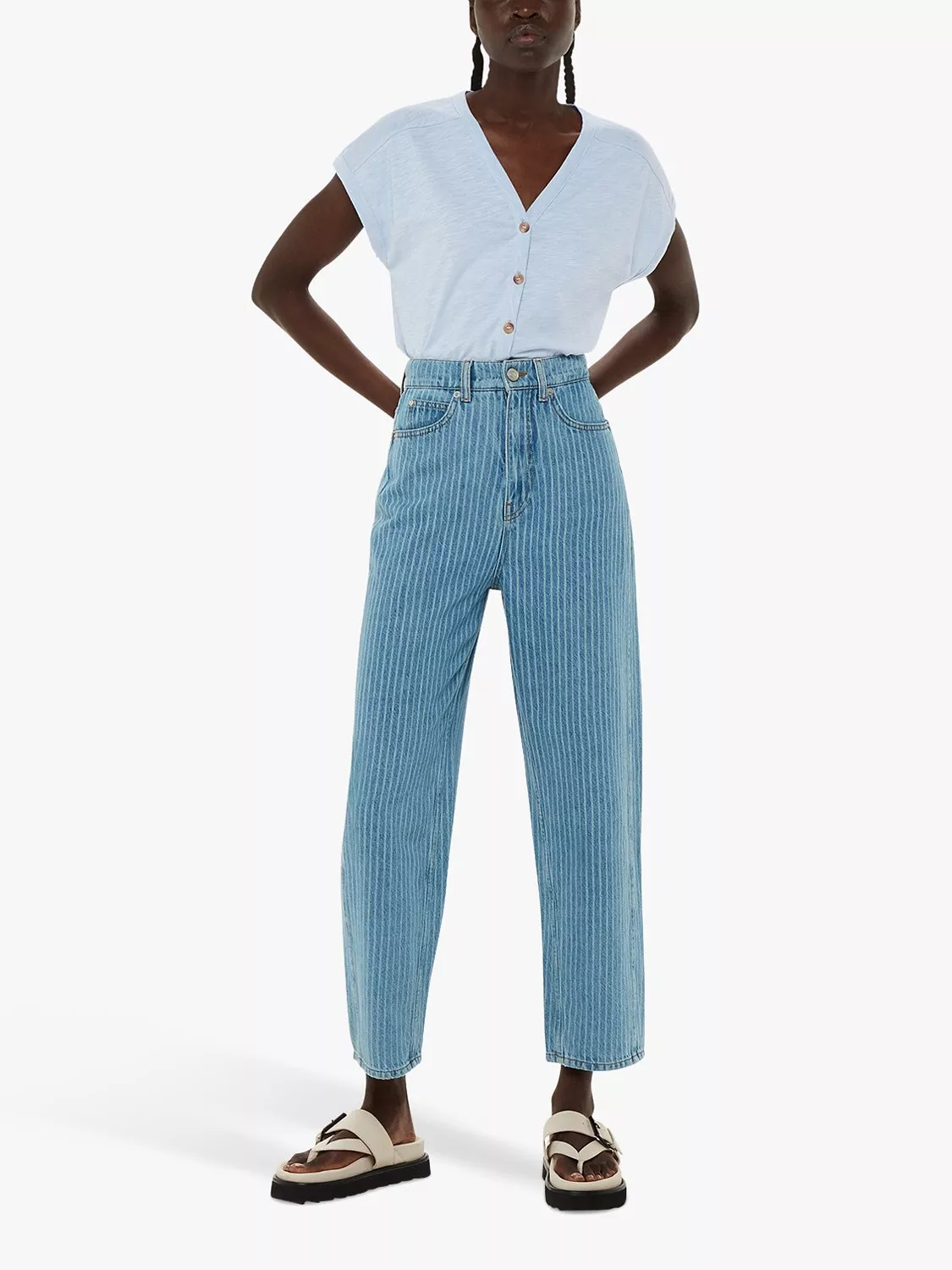 With a button-up neckline and cap sleeves, it's made from soft cotton and pairs effortlessly with floaty summery skirts for warm days spent with good friends.