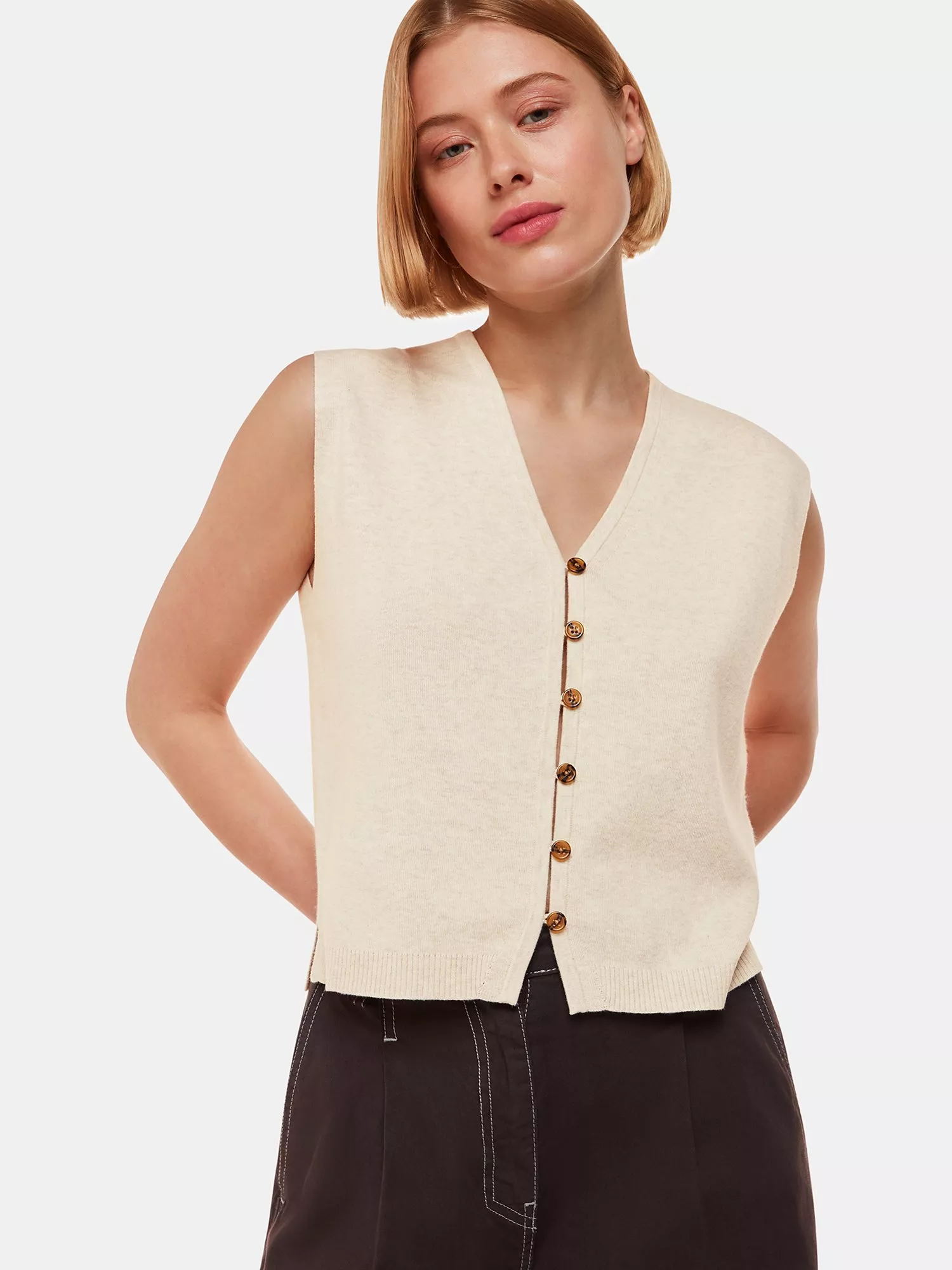 Featuring a classic v-neckline, this knitted tank top by Whistles is constructed from a super-soft cotton-blend.