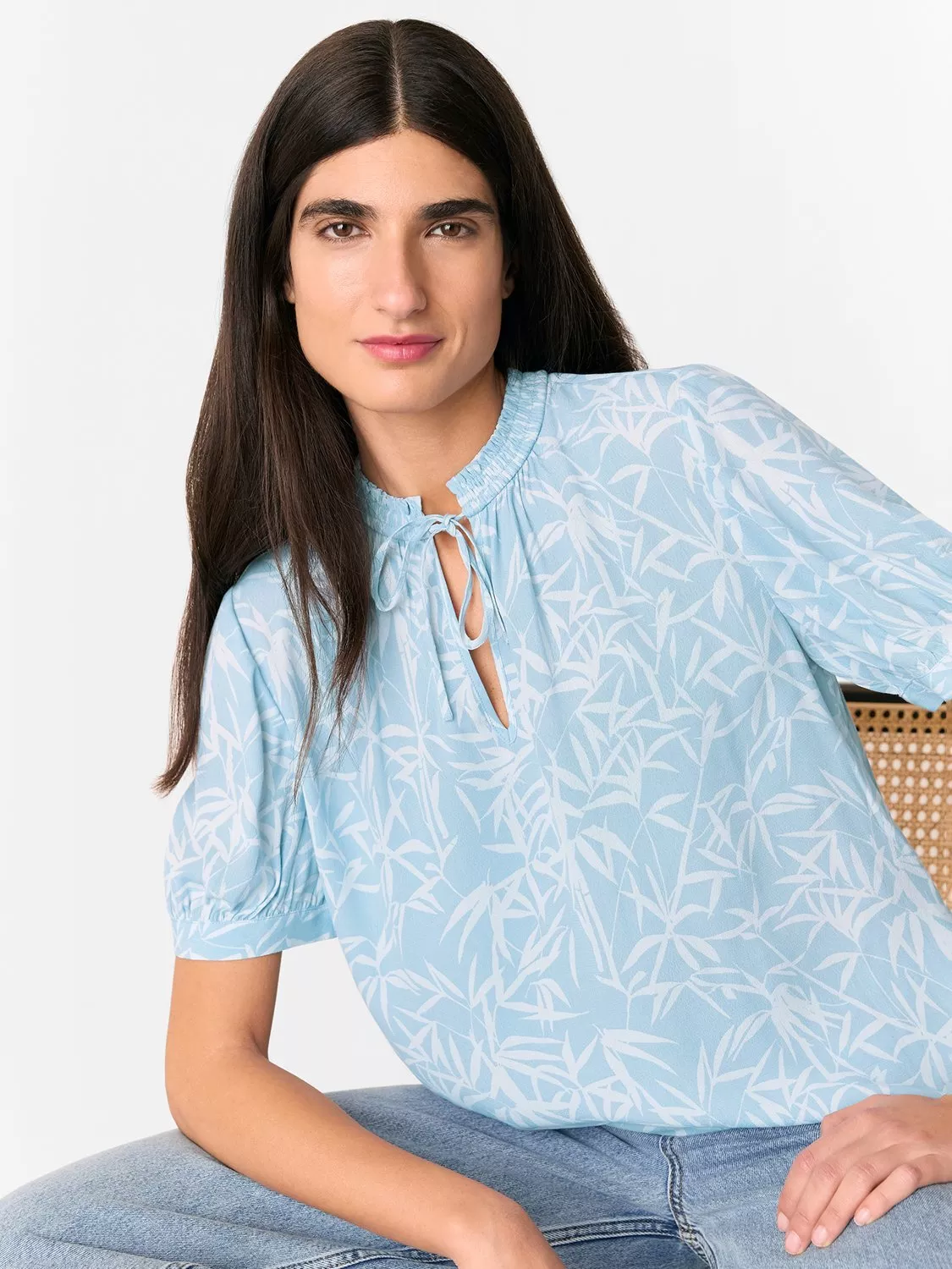 With a bamboo leaves print, this top from Whistles is cut with a tie round neckline and short sleeves.