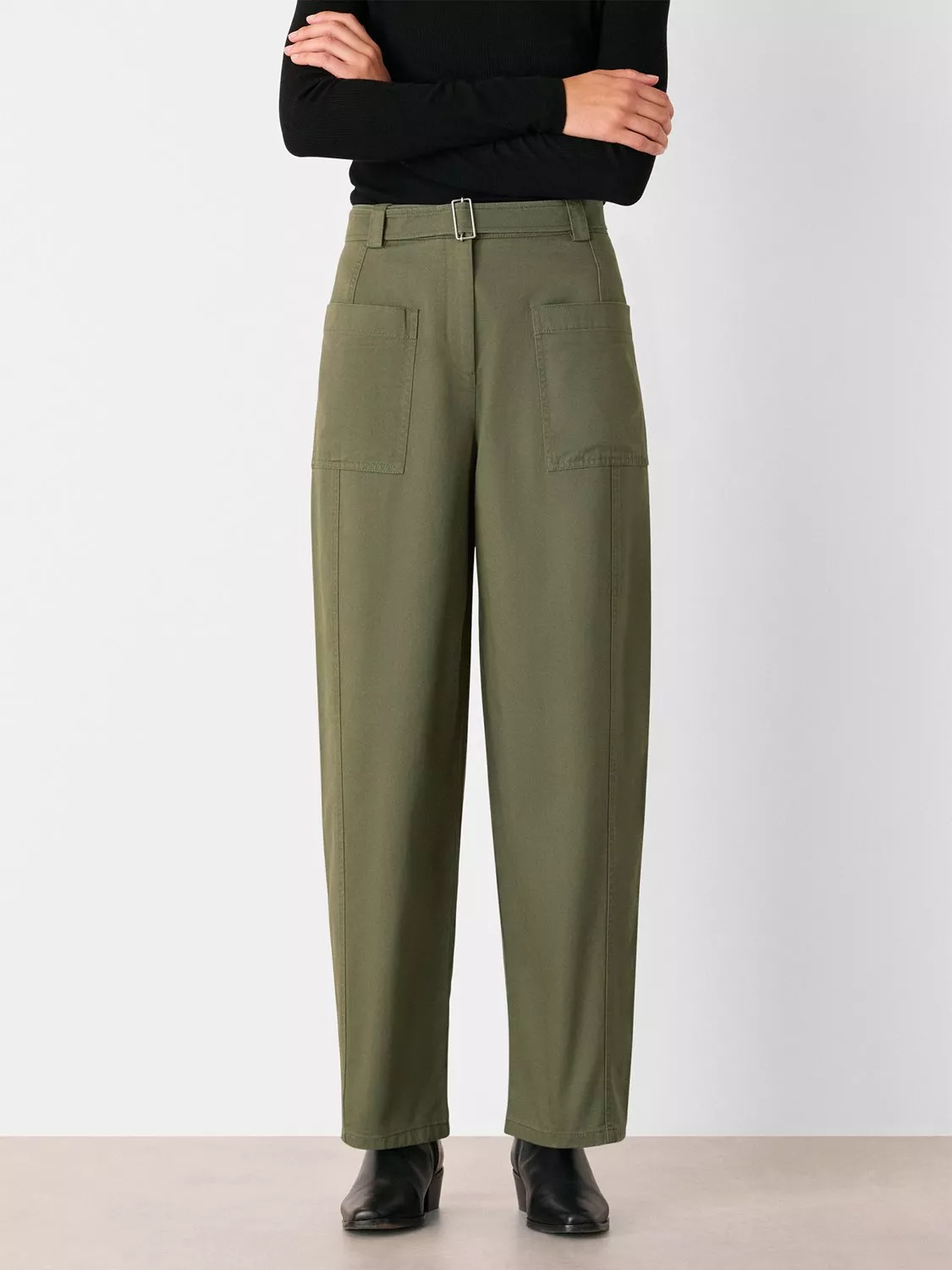 Cut from pure cotton to a modern barrel leg silhouette, this pair of trousers from Whistles are belted to sit mid rise and are finished with neatly cropped ankle-length hems.