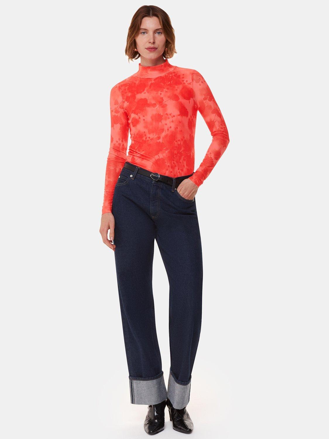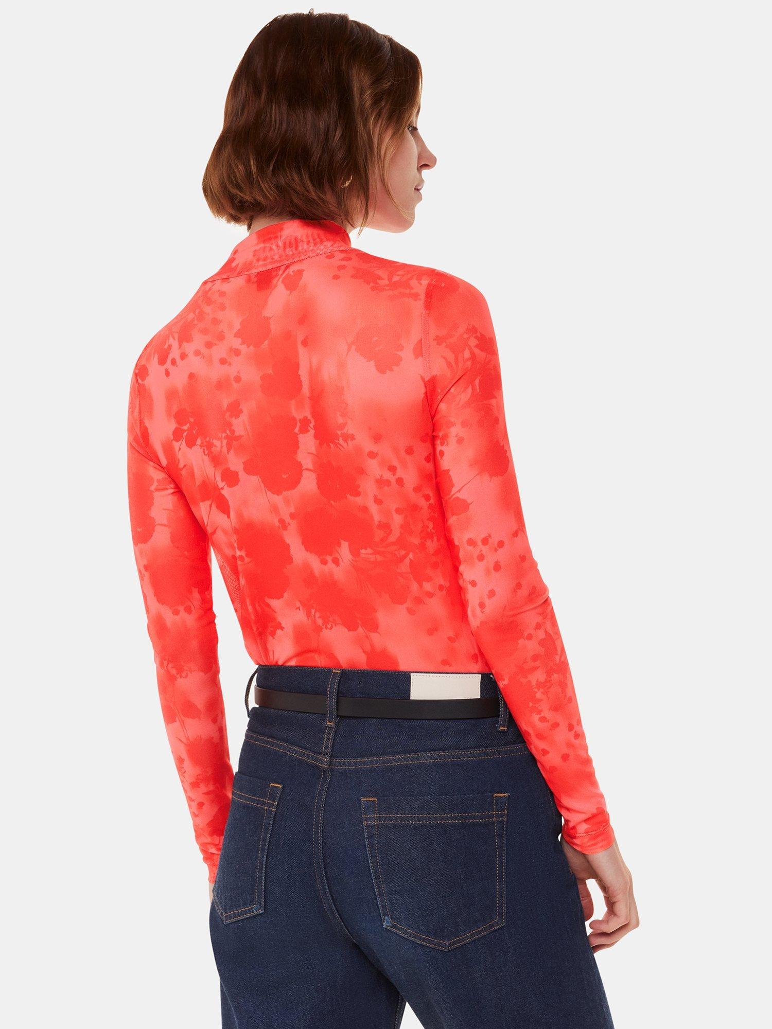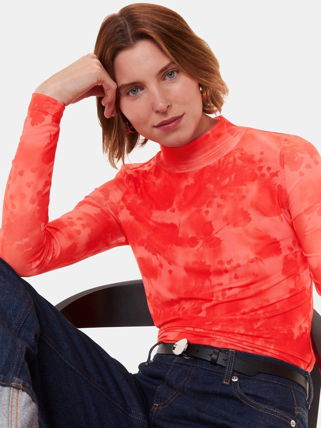 A solo piece or layering staple, this high neck top by Whistles features a blurred blooms print set on a mesh base.