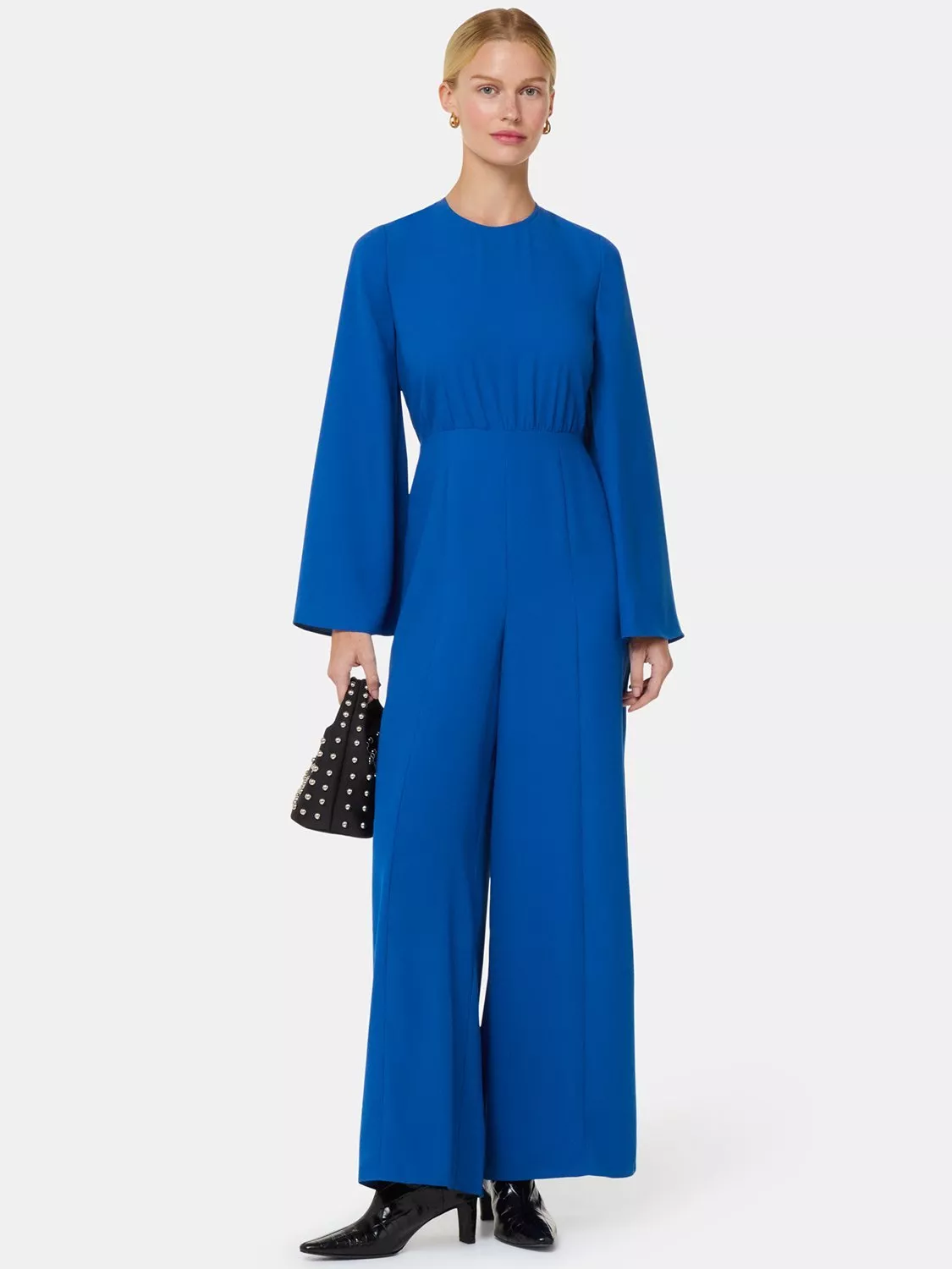 Kept simple with a round neckline and long sleeves, this gathered jumpsuit from Whistles is shaped to a billowy wide-leg silhouette and will keep you comfy with their featherweight fabrication.