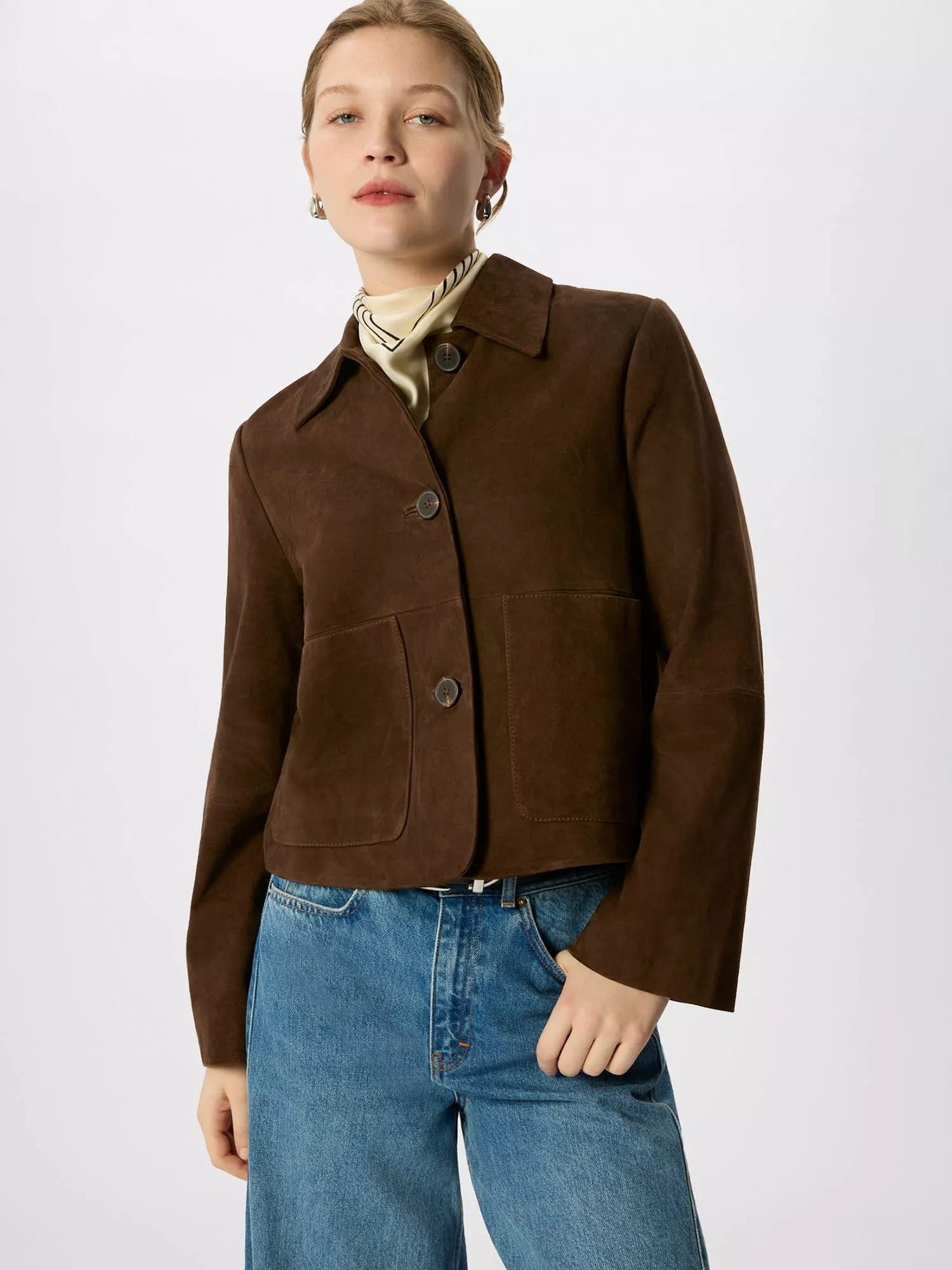 WhistlesButton Cropped Suede Jacket, Chocolate