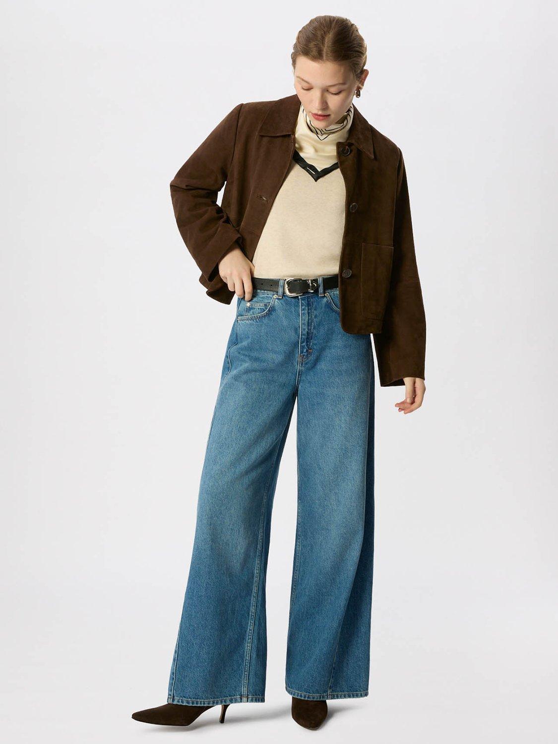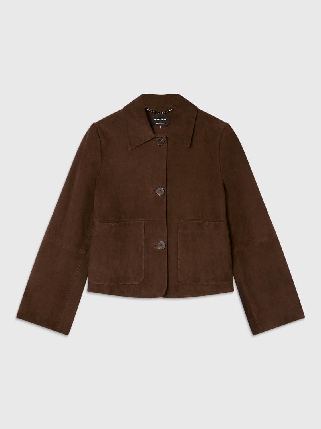 This cropped suede jacket by Whistles brings a confident edge to your day. The classic collar, oversized pockets and regular fit help you feel at ease while adding a sharp twist to your everyday wardrobe.