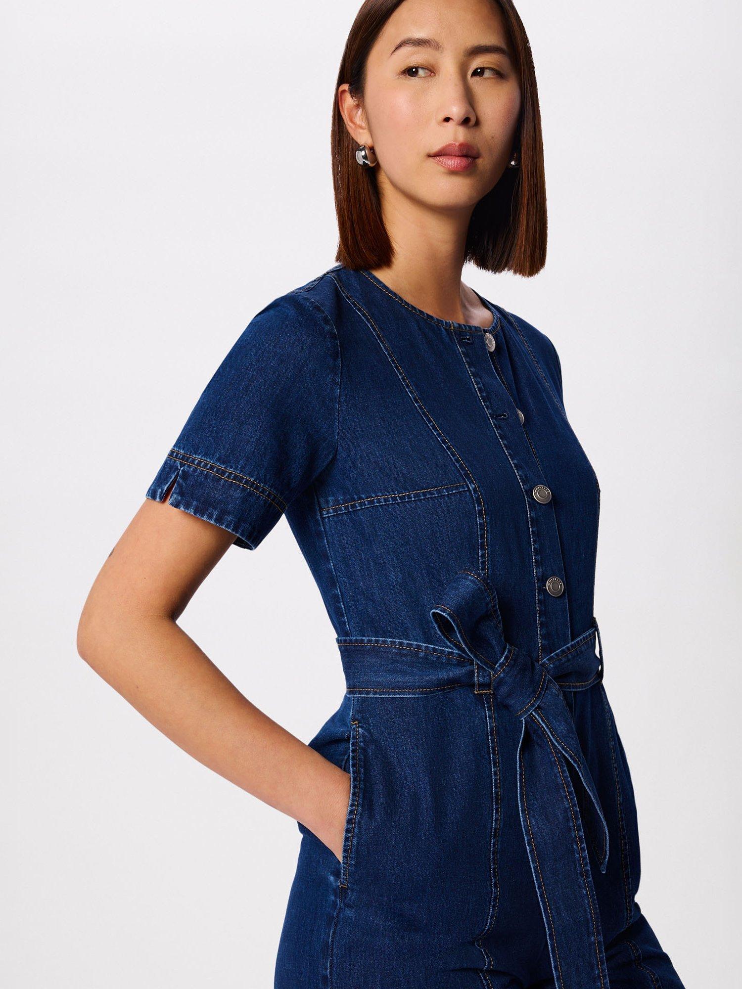 This button down cropped Whistles jumpsuit is crafted from soft cotton denim for comfort all day. Its wide-leg cut, round neck and short sleeves offer a relaxed fit, finished with a tie waist detail.