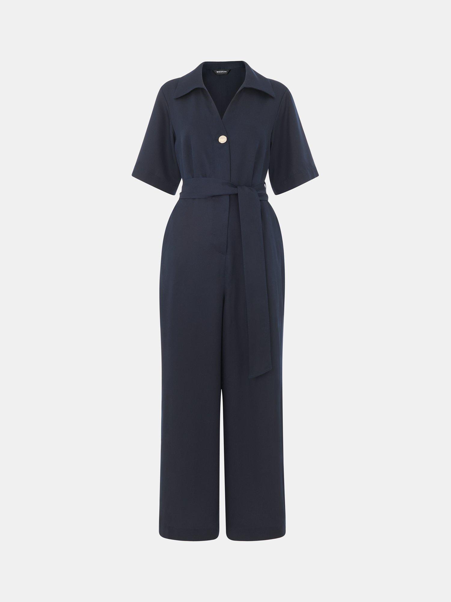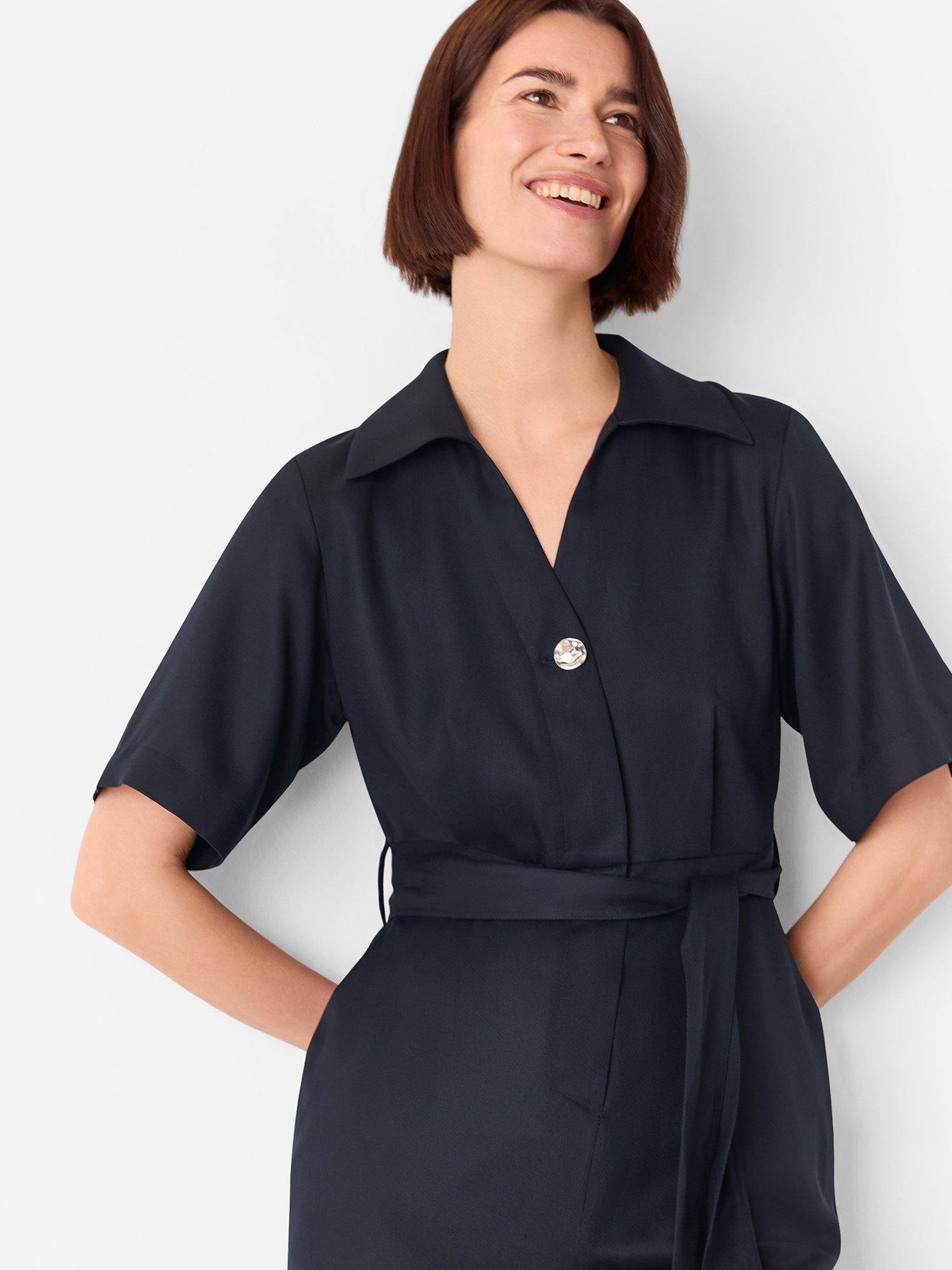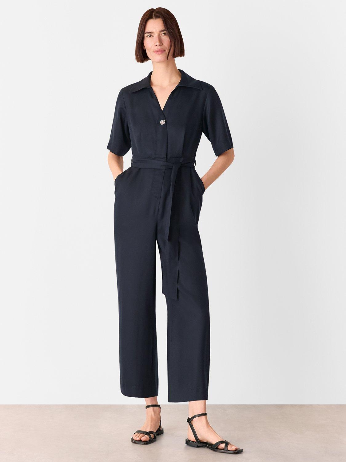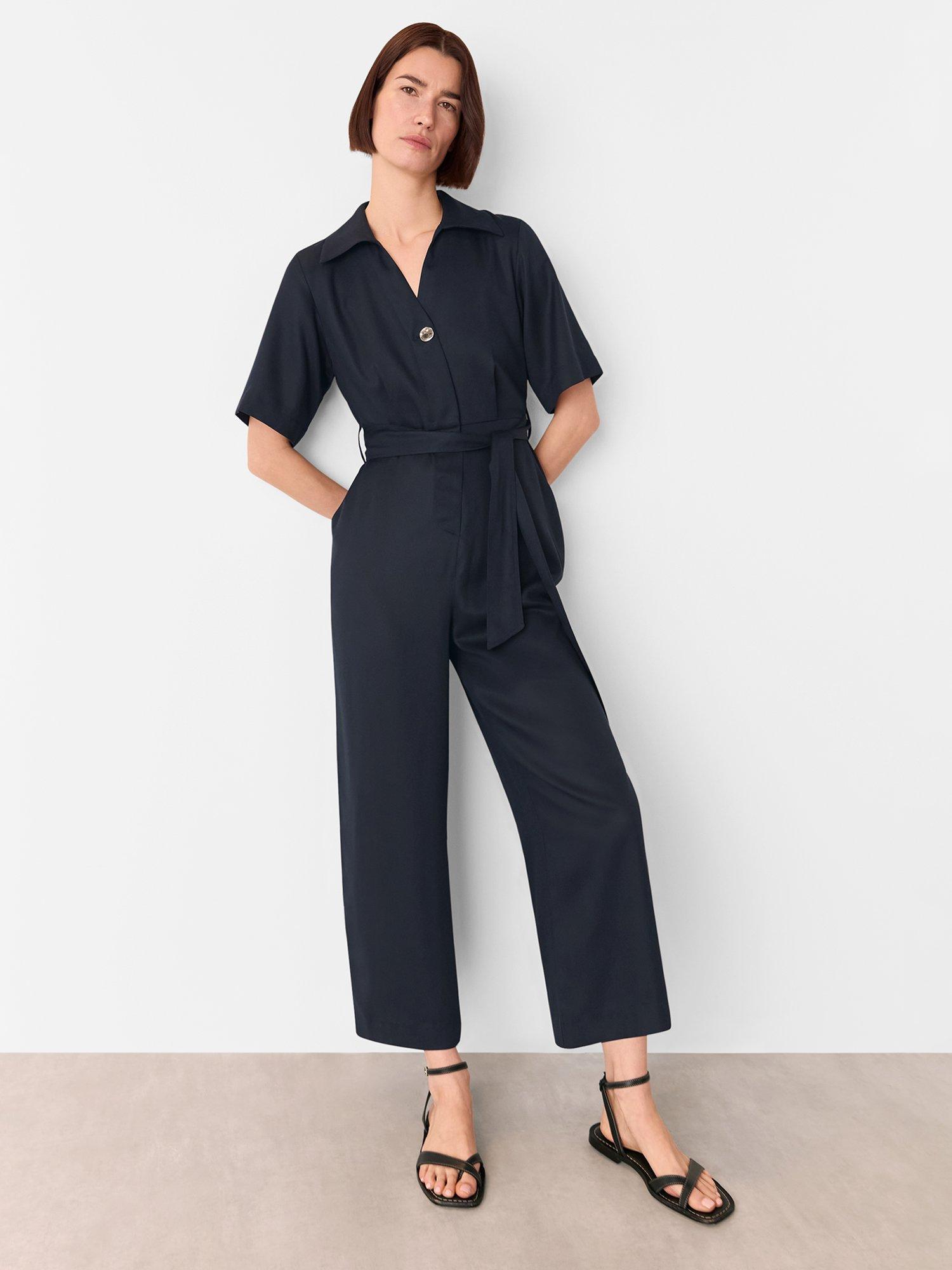 This tailored ankle-grazer jumpsuit features a straight cut, soft lyocell fabric, short sleeves, and a neat collar. Designed for daywear, its clever button fastening ensures effortless style and comfort for you in any setting.