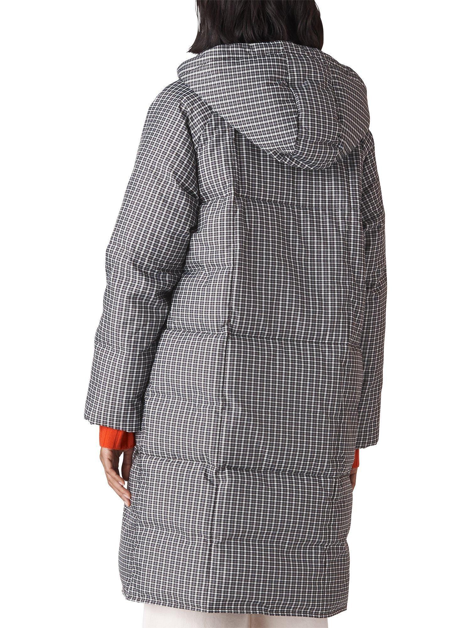 This insulated coat finishes just above the knee, giving good coverage and warmth over the hips and thighs. A hood, front pockets and button fastenings finish the design.