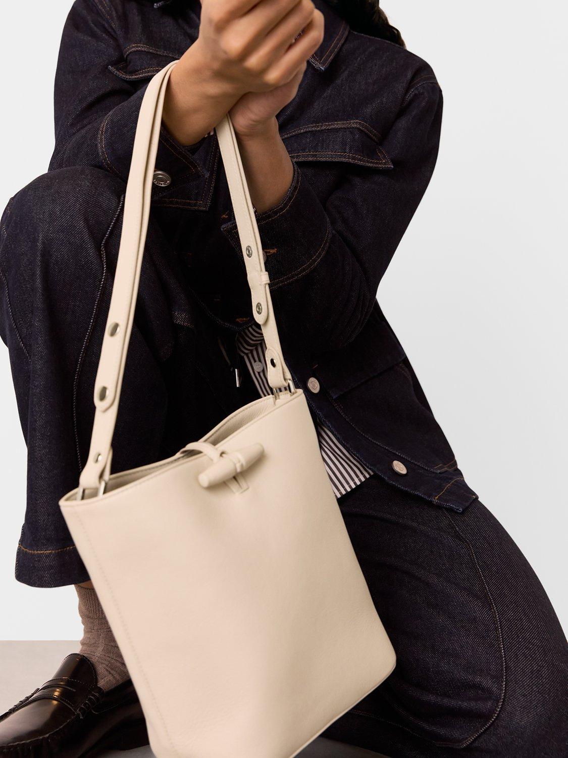WhistlesCleo Toggle Leather Bucket Bag, Ivory