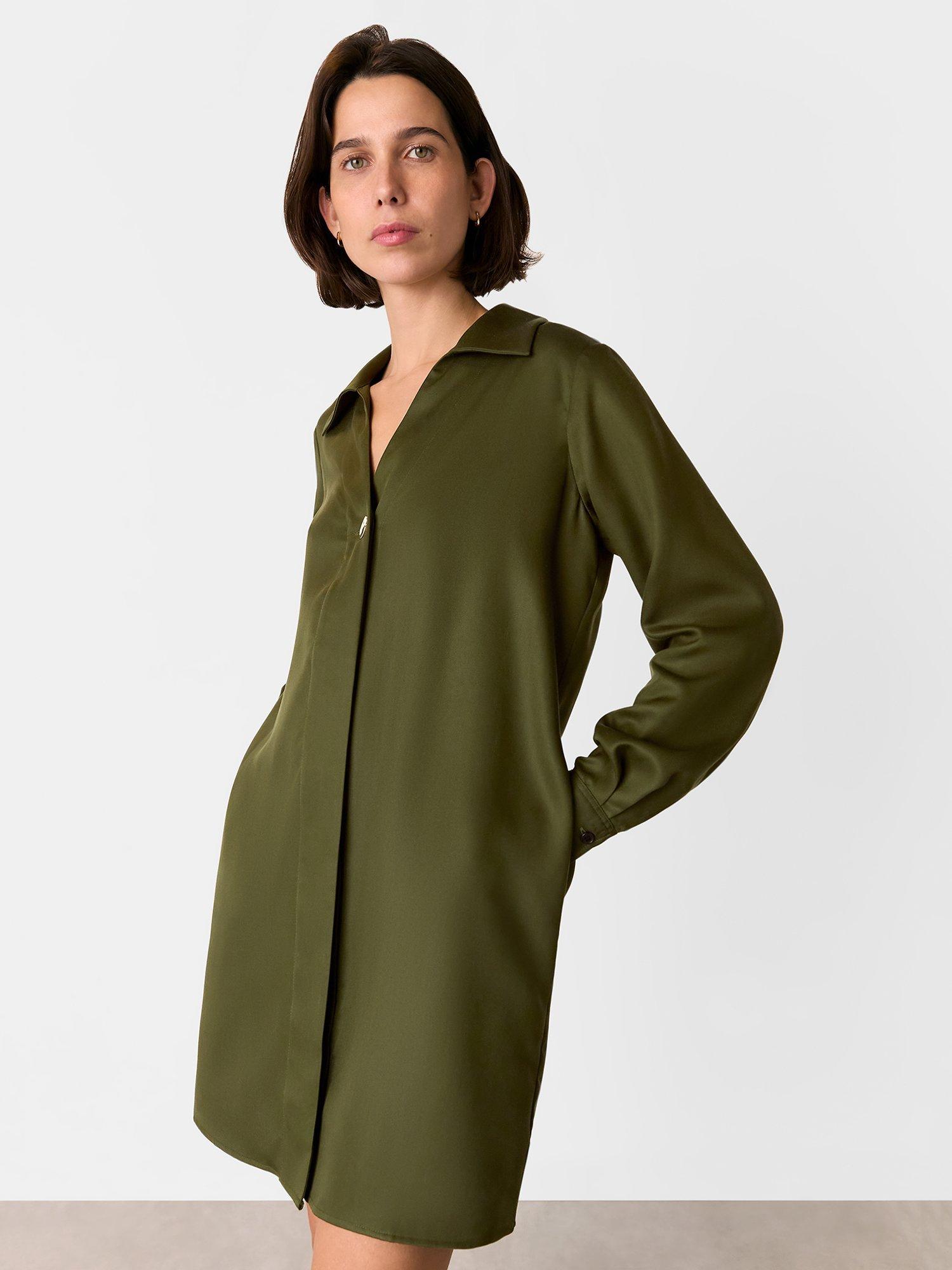 Carved with a collar neck and long sleeves, this mini shirt dress from Whistles is made from soft lyocell with a button detail.