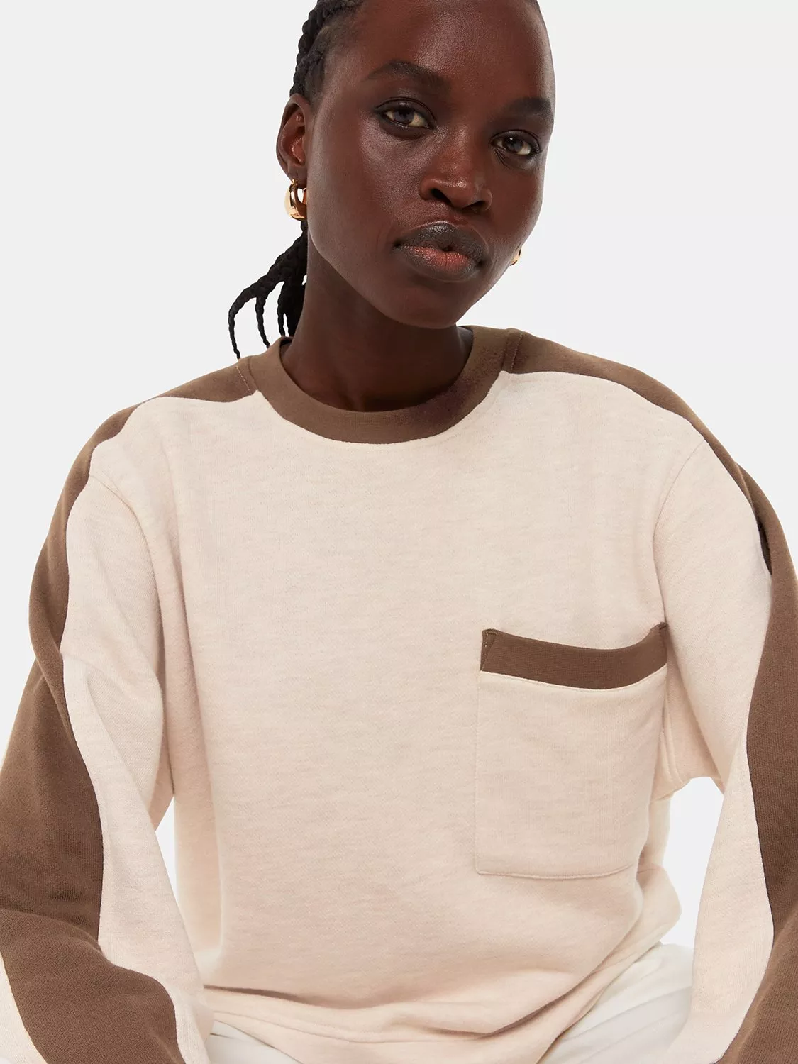 A pull-on-and-go, this easy sweatshirt by Whistles features colour-blocking borrowed from the '80s.