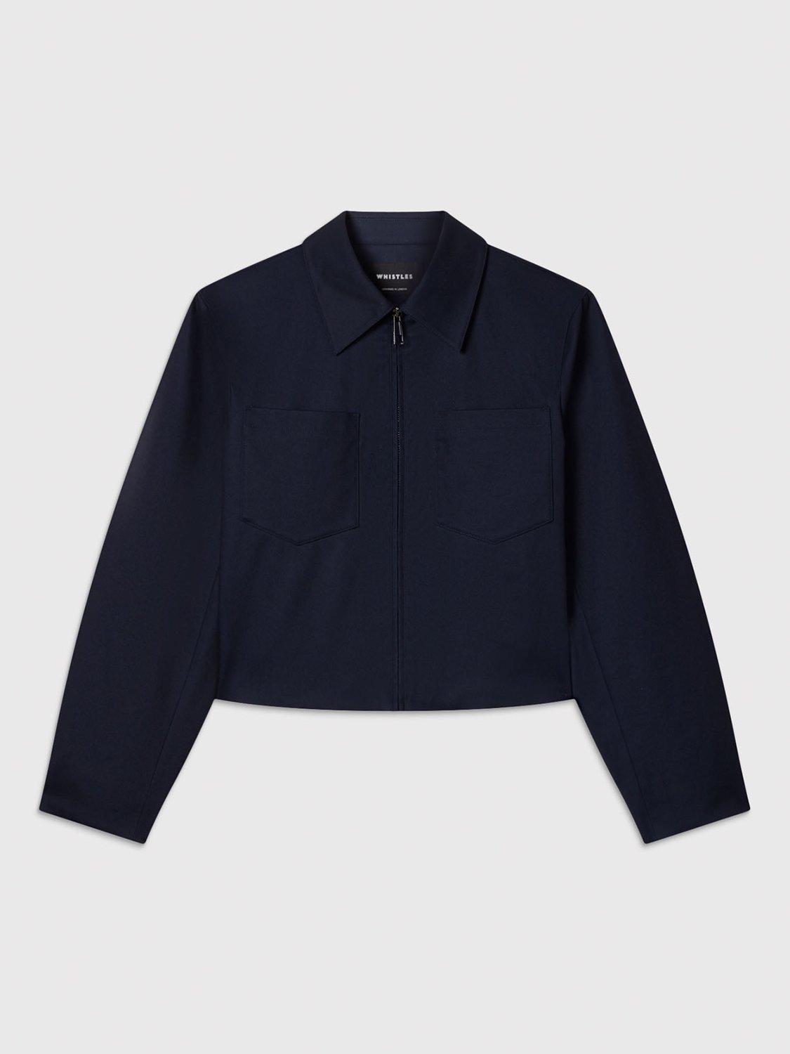 A cropped compact jacket by Whistles, designed for everyday ease. With a classic collar, smart zip fastening, and regular fit, it offers practical comfort and elevates your look.