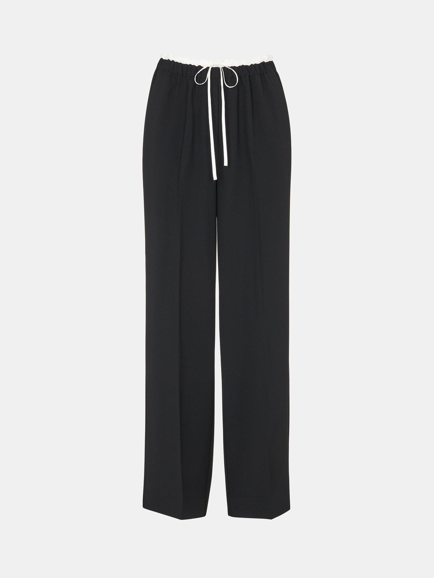 Topped with a contrast crepe drawstring waistband, they are longer in length and play nicely with print thanks to their plain canvas.