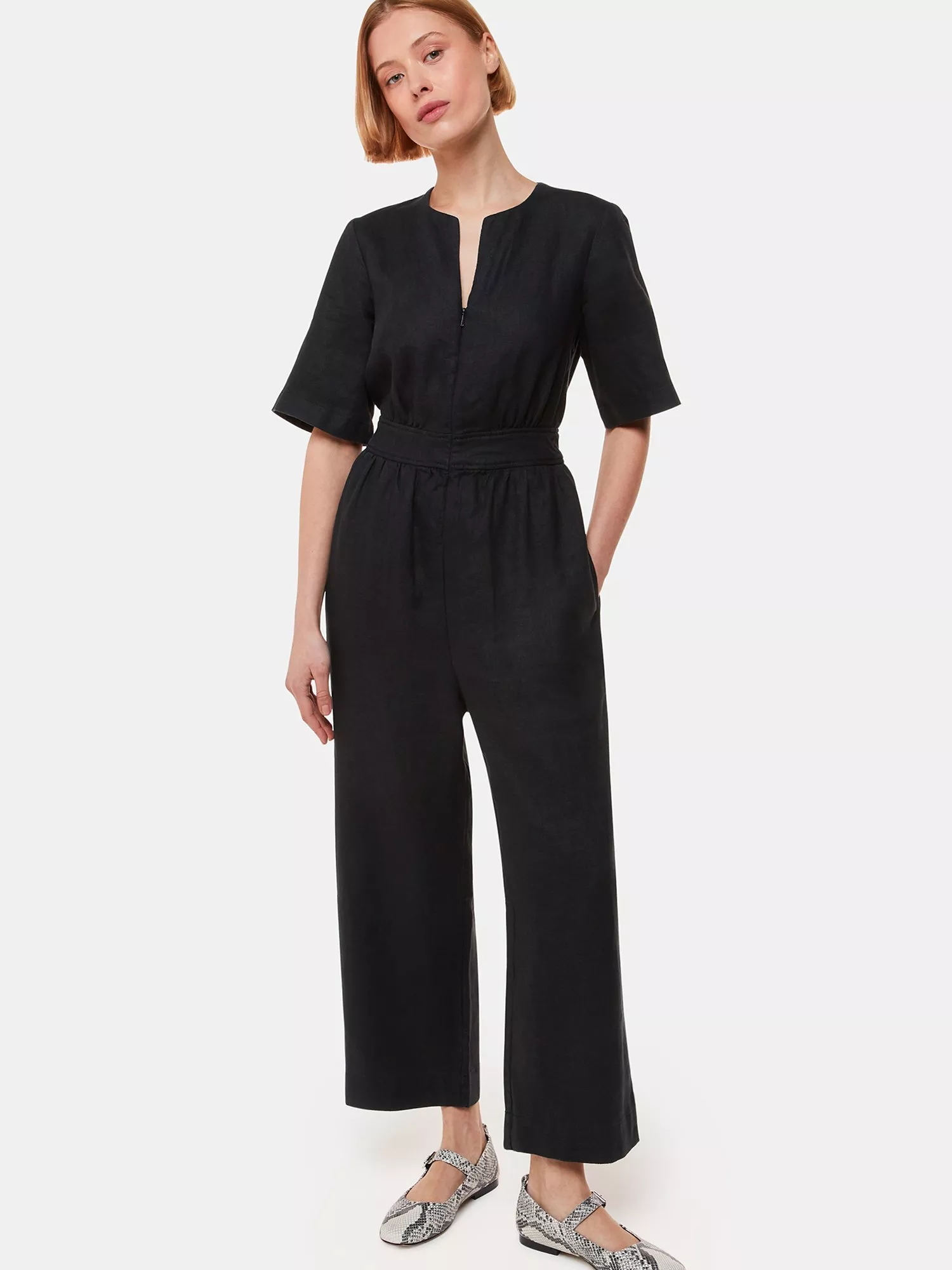 Kept simple with a round neckline and elbow length sleeves, this jumpsuit from Whistles is shaped to a billowy wide-leg silhouette and is spun from pure linen for a featherweight feel.