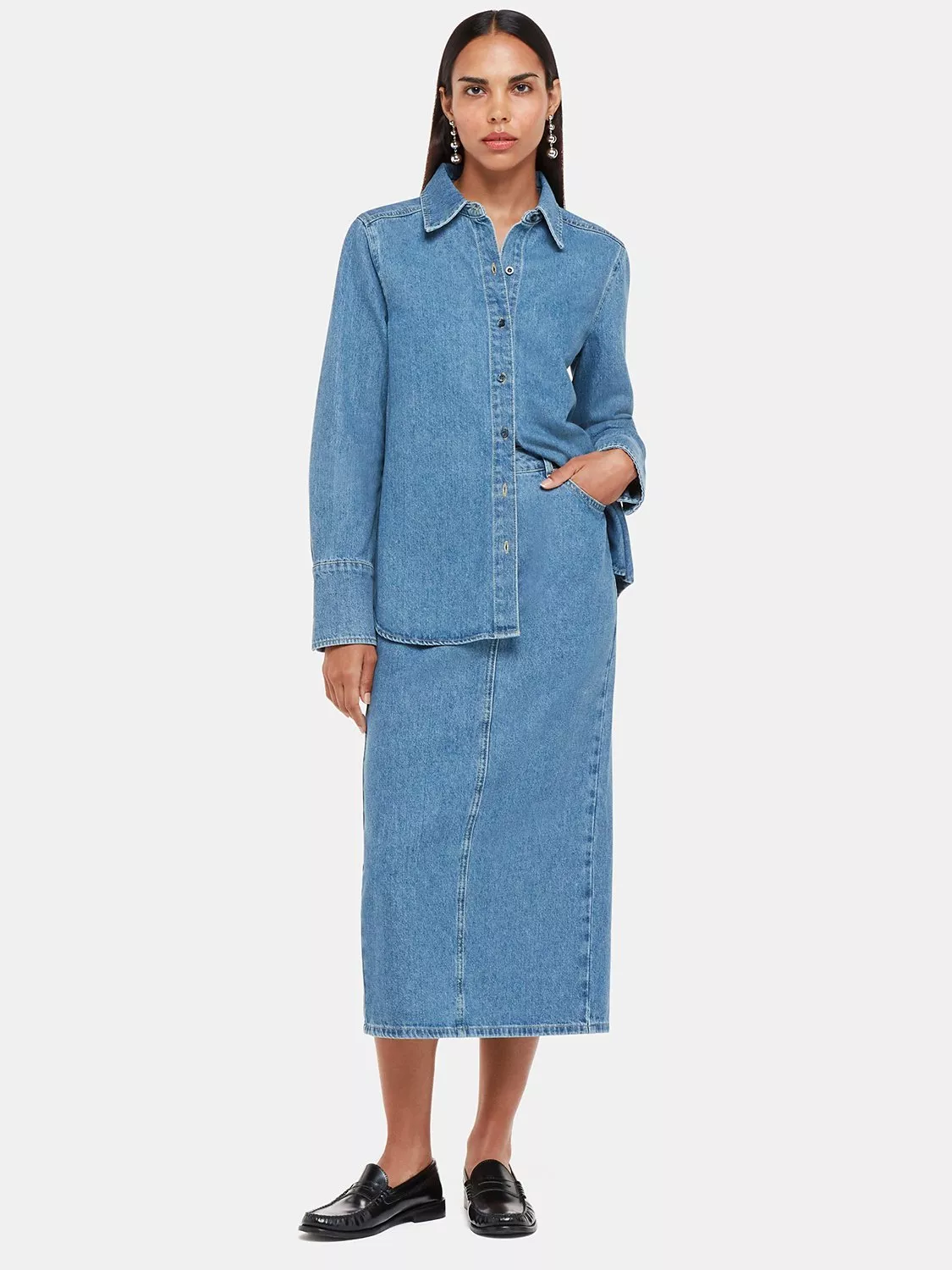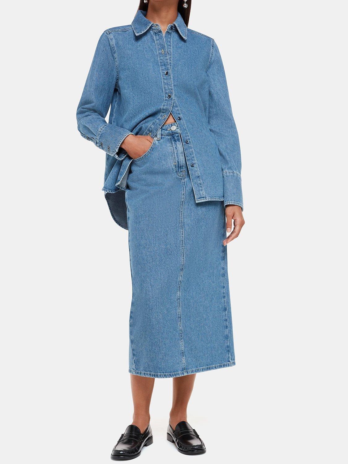 Entirely flattering with its A-line shape, this calf-grazing skirt by Whistles is a celebration of minimalism.