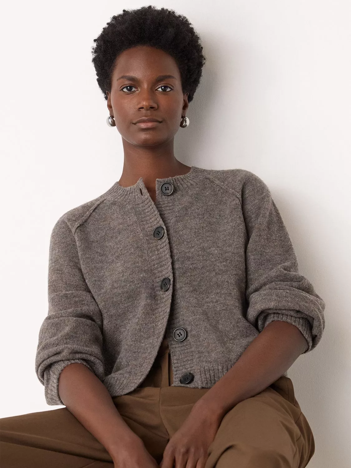 This versatile cardigan wraps you in warmth and comfort. It's easy button fastening and crew neck ensure you stay snug through busy days or quiet moments, with wool blend softness adding a refined touch to every outfit.