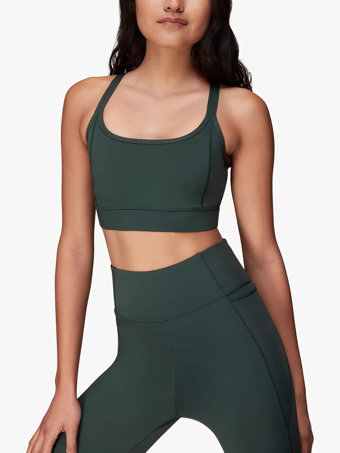 Give off 'don't cross with me' vibes in this cross-back sports bra from Whistles. This sports bralette features a scooped neckline, cross straps on the back and has been crafted with fast-drying nylon to help you keep cool whilst working out.