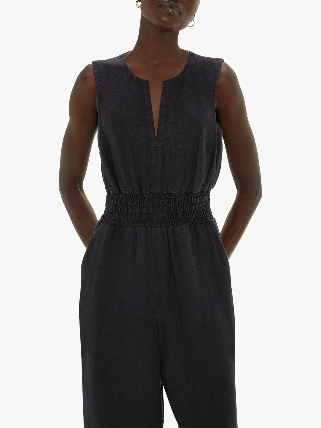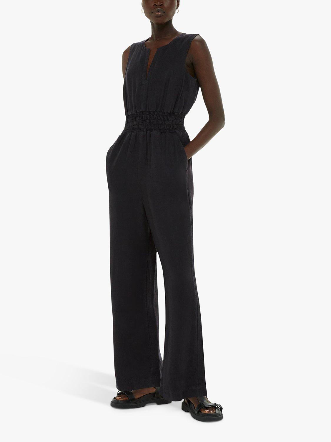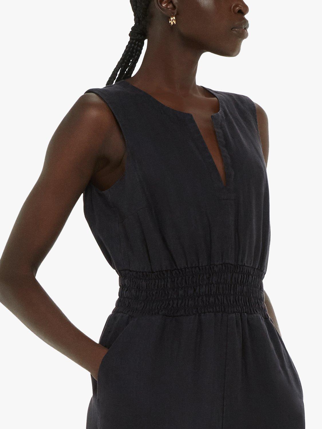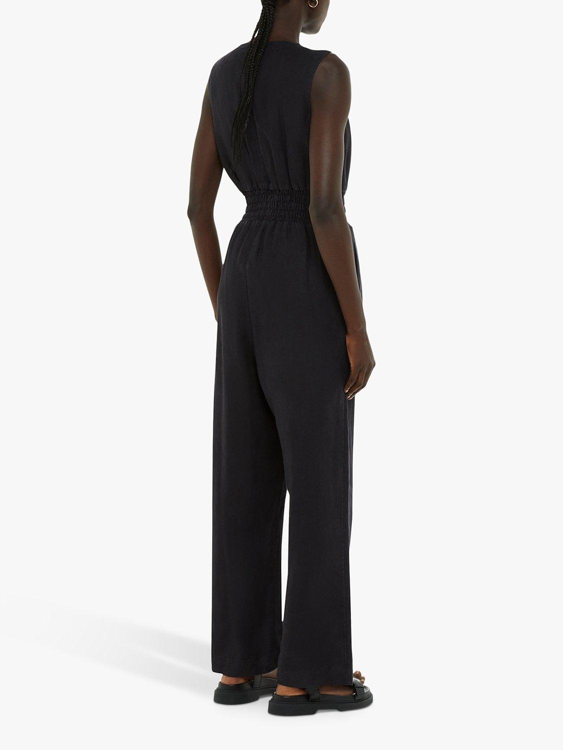 Framed with a flattering v-neck, this sleeveless jumpsuit by Whistles falls to a straight leg silhouette and is cast in easy-breezy linen for light and breathable wear.