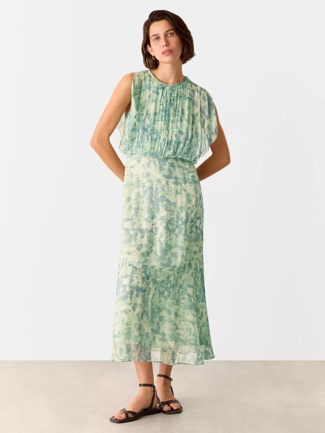 Set in a simple, A-line shape, this mid-length dress from Whistles is dreamt up from whisper-weight viscose. Topped with a round neck, this sleeveless style receives a vibrant update with the help of an abstract dashed brushmark print.