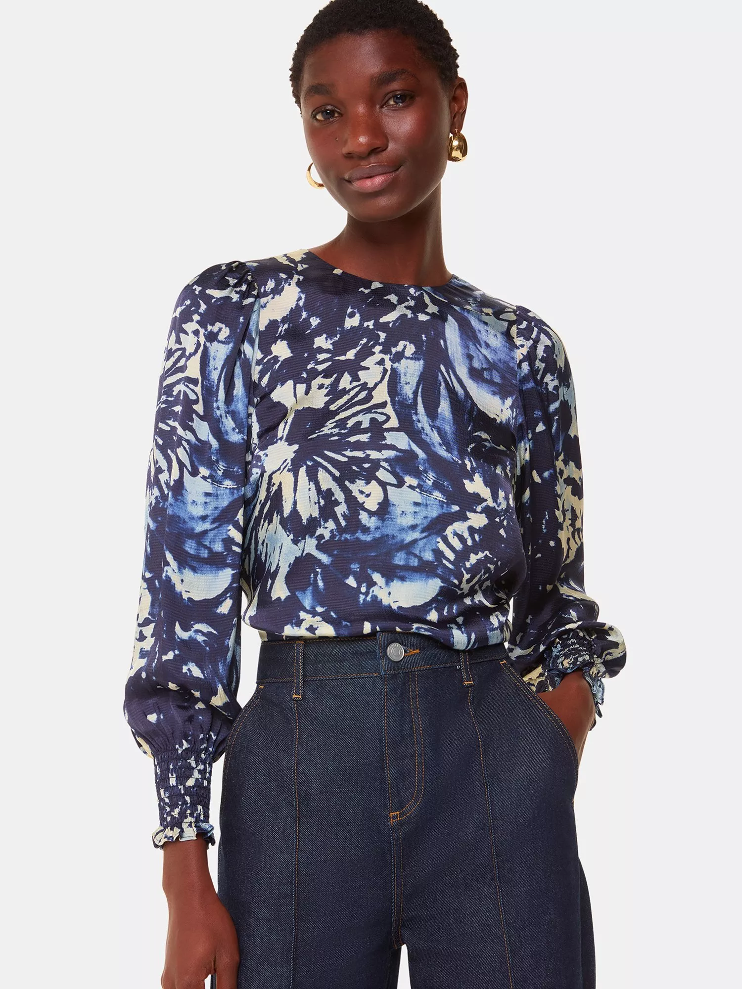 Bringing a neat addition to your wardrobe, this blouse from Whistles will brighten your wardrobe with its abstract floral print. Cut with a round neckline and long sleeves with elasticated cuffs, it is made from soft satin.