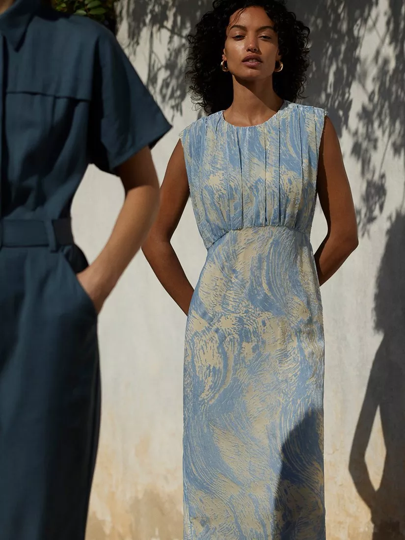A tried-and-true favourite in a stunning A-line silhouette, this midi dress from Whistles is a stunning occasion choice. Featuring a round neckline and a gathered bodice, this style draws the eye with an abstract print with a textured velvet devore finish.