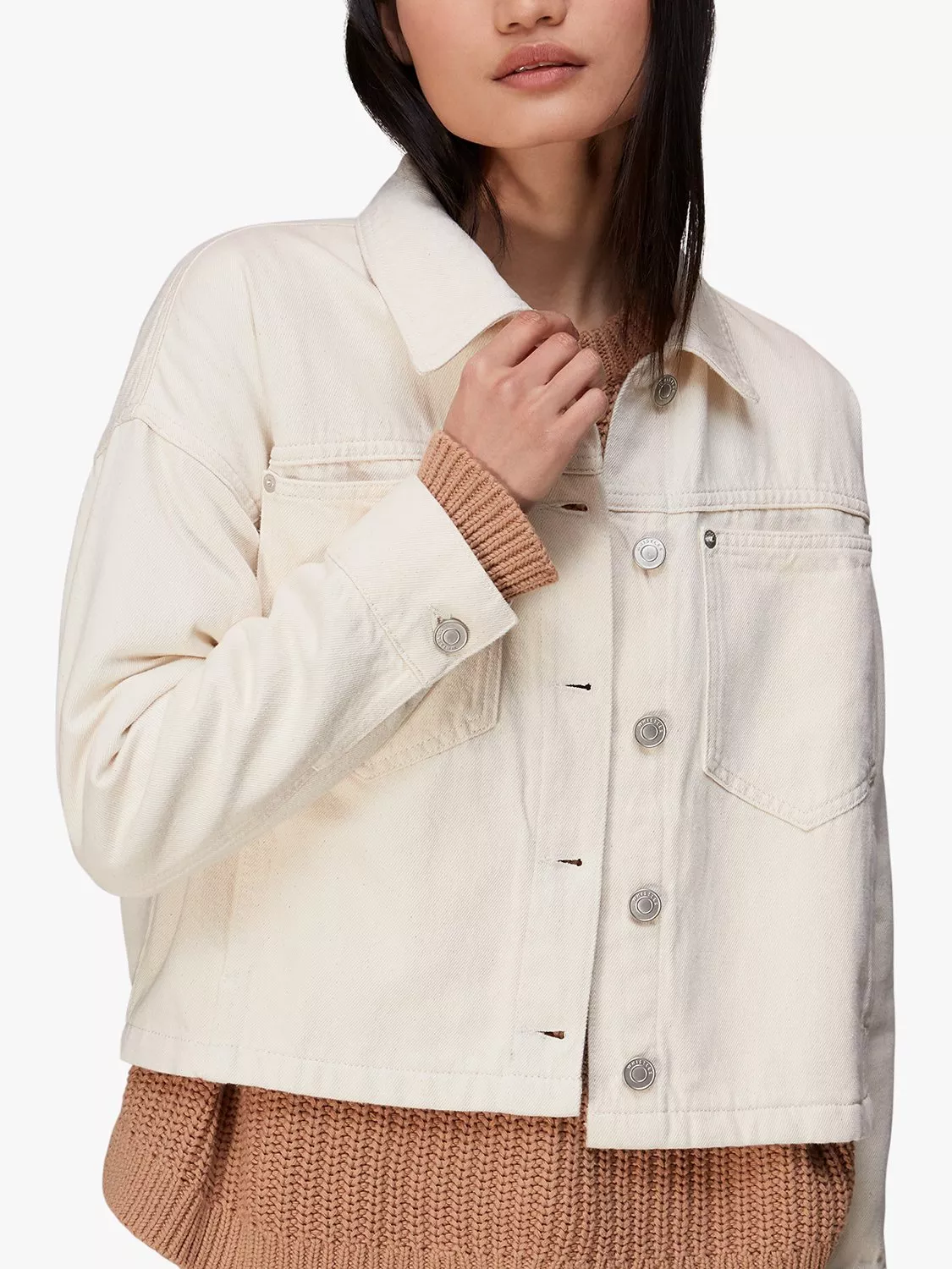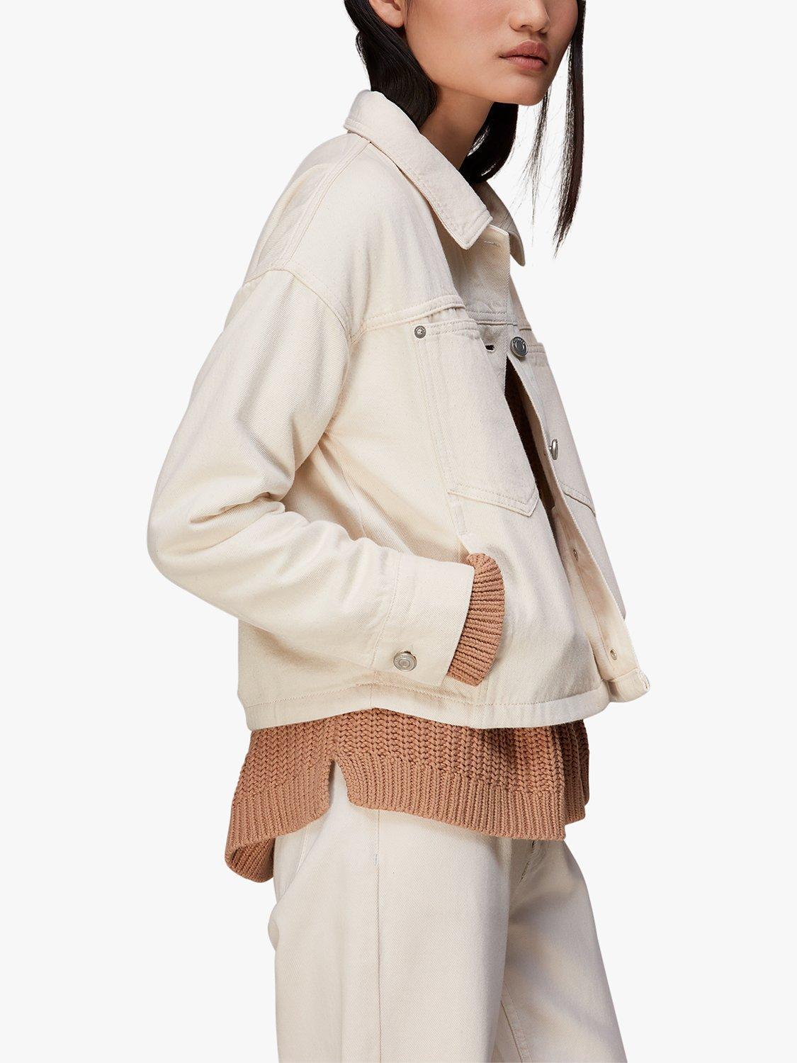 WhistlesElla Cropped Denim Jacket, Beige