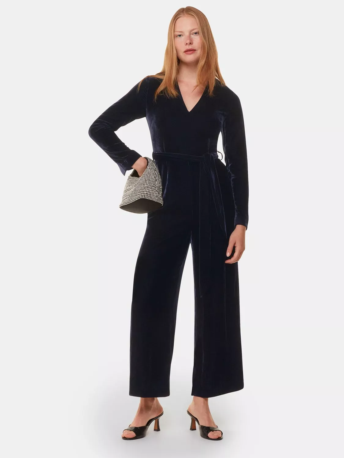 With a plunging v-neck and long sleeves, this jumpsuit from Whistles is made in plush velvet.