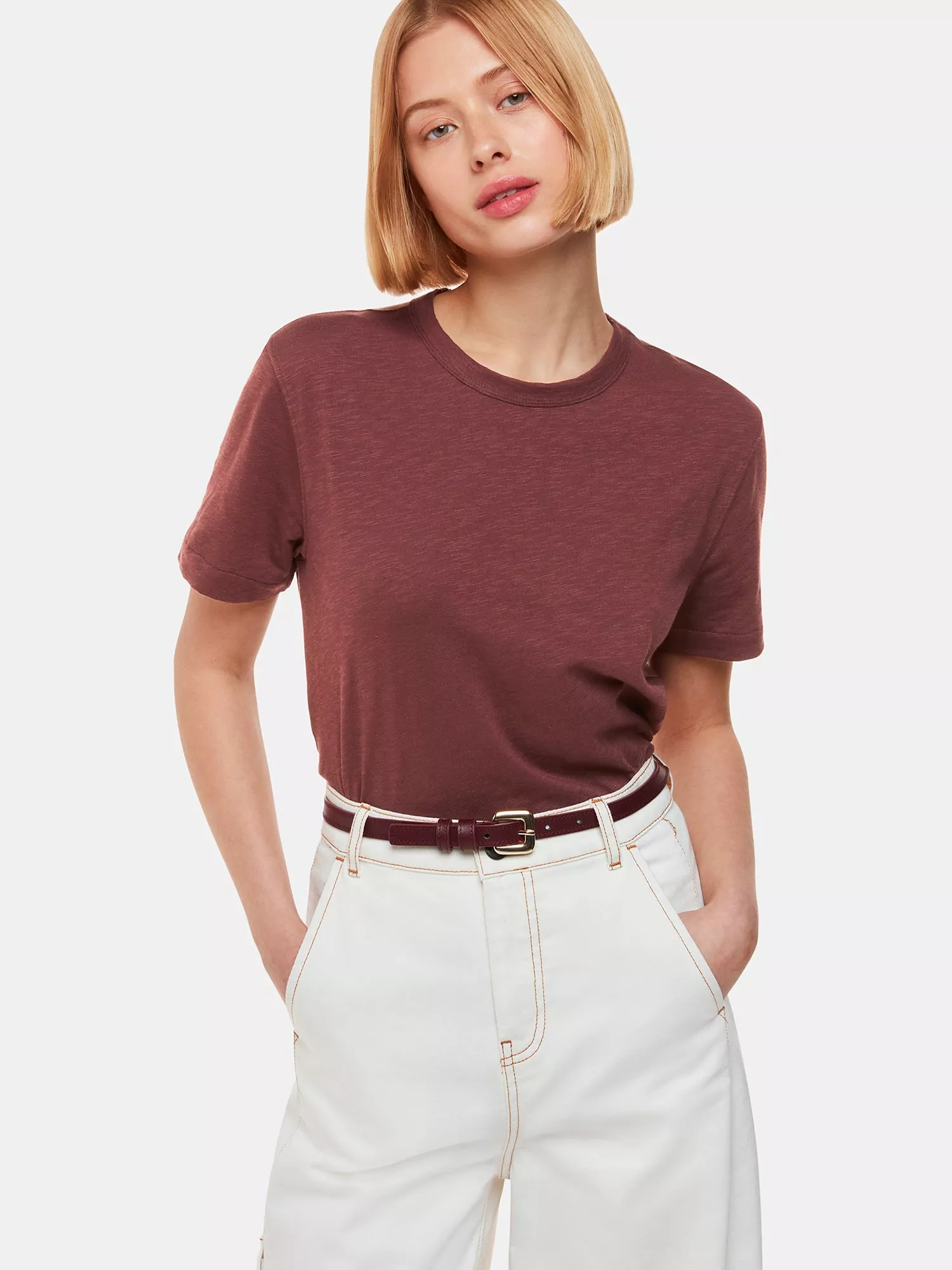 The ultimate staple, this t-shirt by Whistles is made from soft, breathable cotton with a round neckline and short sleeves.
