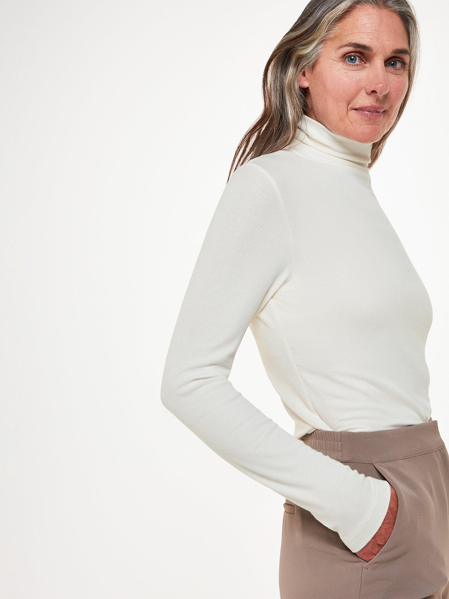 Lengthening the profile with its high neckline and long sleeves, it is made with light yet robust blended fabric for longevity of wear and will bolster your smart collection so that you always have something to keep you looking fresh on busy days.
