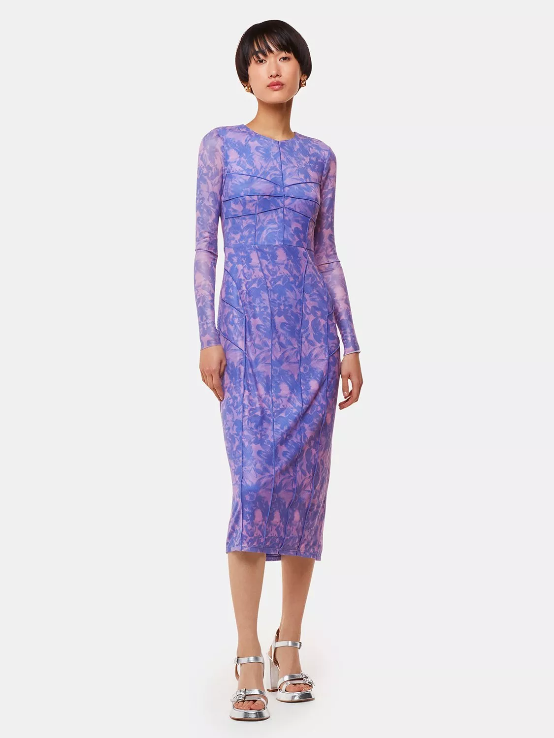 Designed in a fitted, bodycon shape, this midi dress from Whistles is made using a blend of fabrics. With a fuss-free round neckline and full-length sleeves, this style is printed with abstract florals throughout.