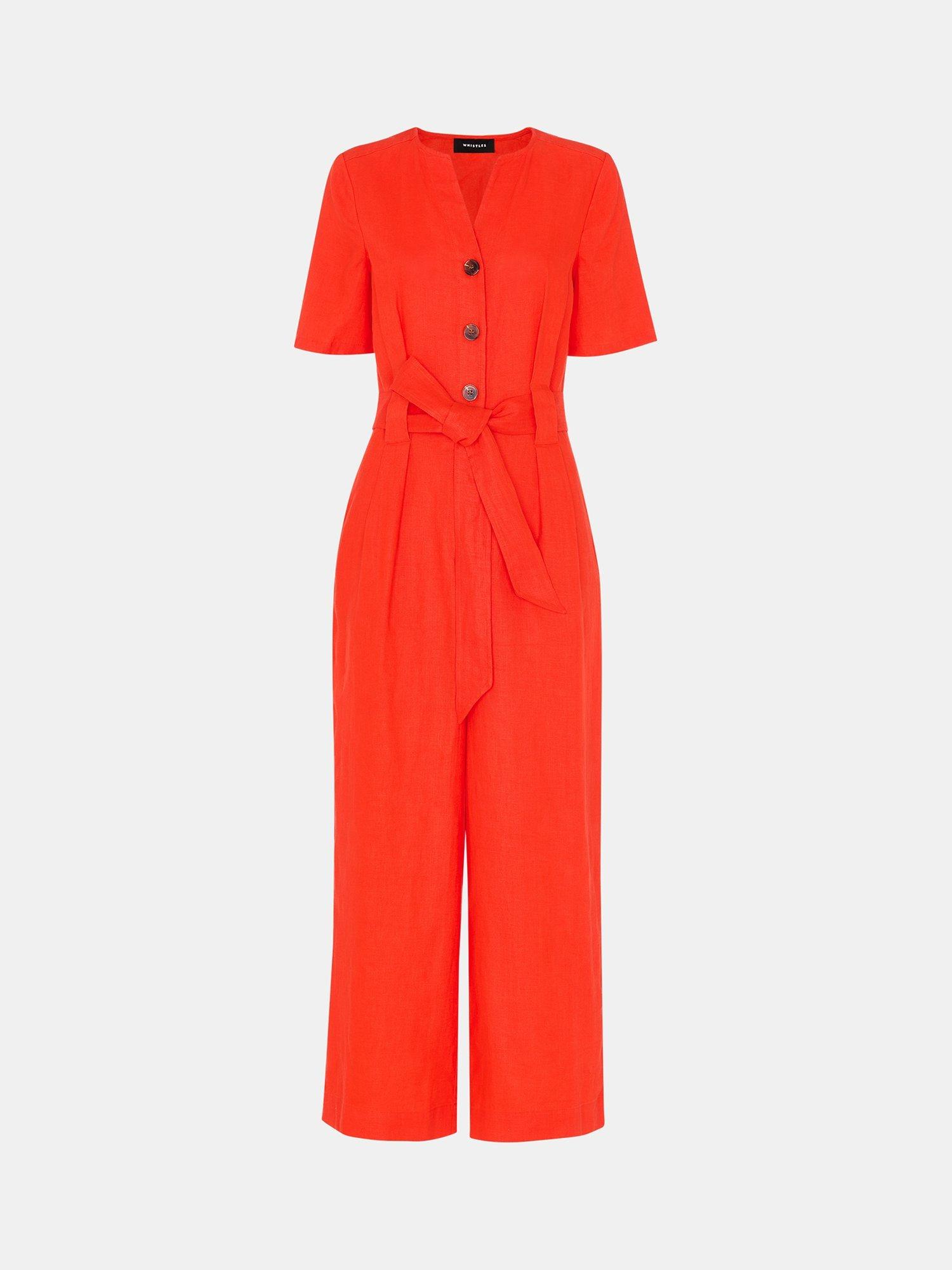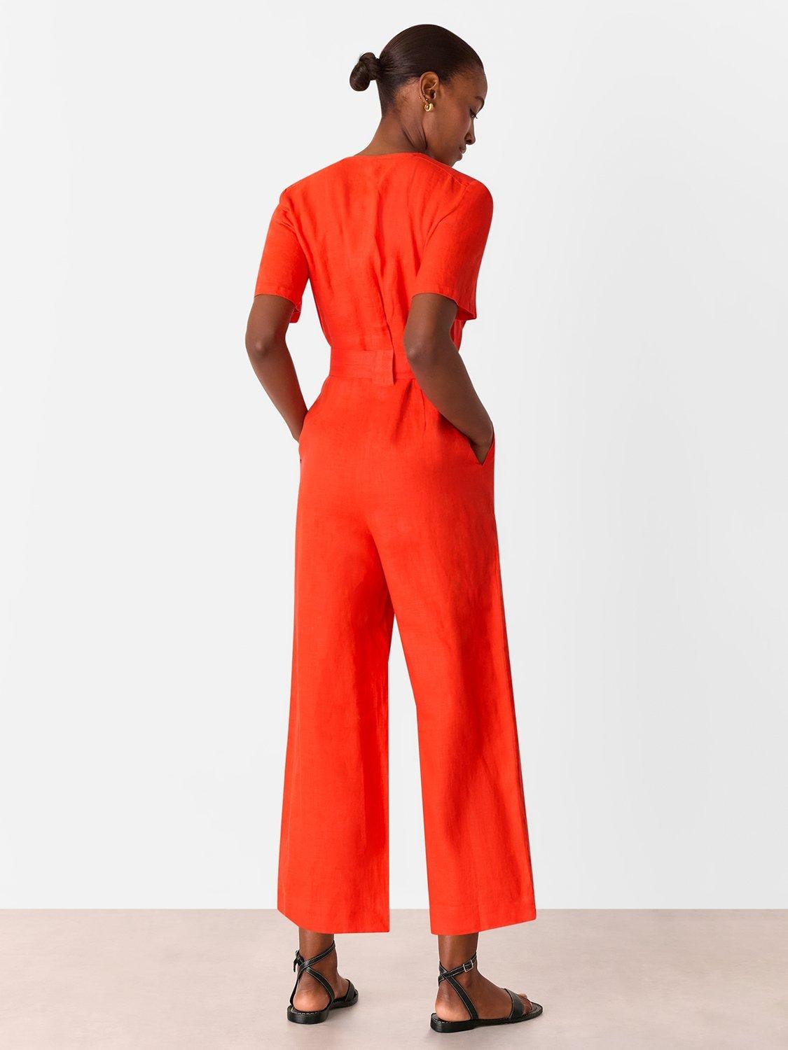 Smartened with a tailored v neckline, this jumpsuit from Whistles falls to a flattering straight leg silhouette and is spun from a light and airy linen blend.