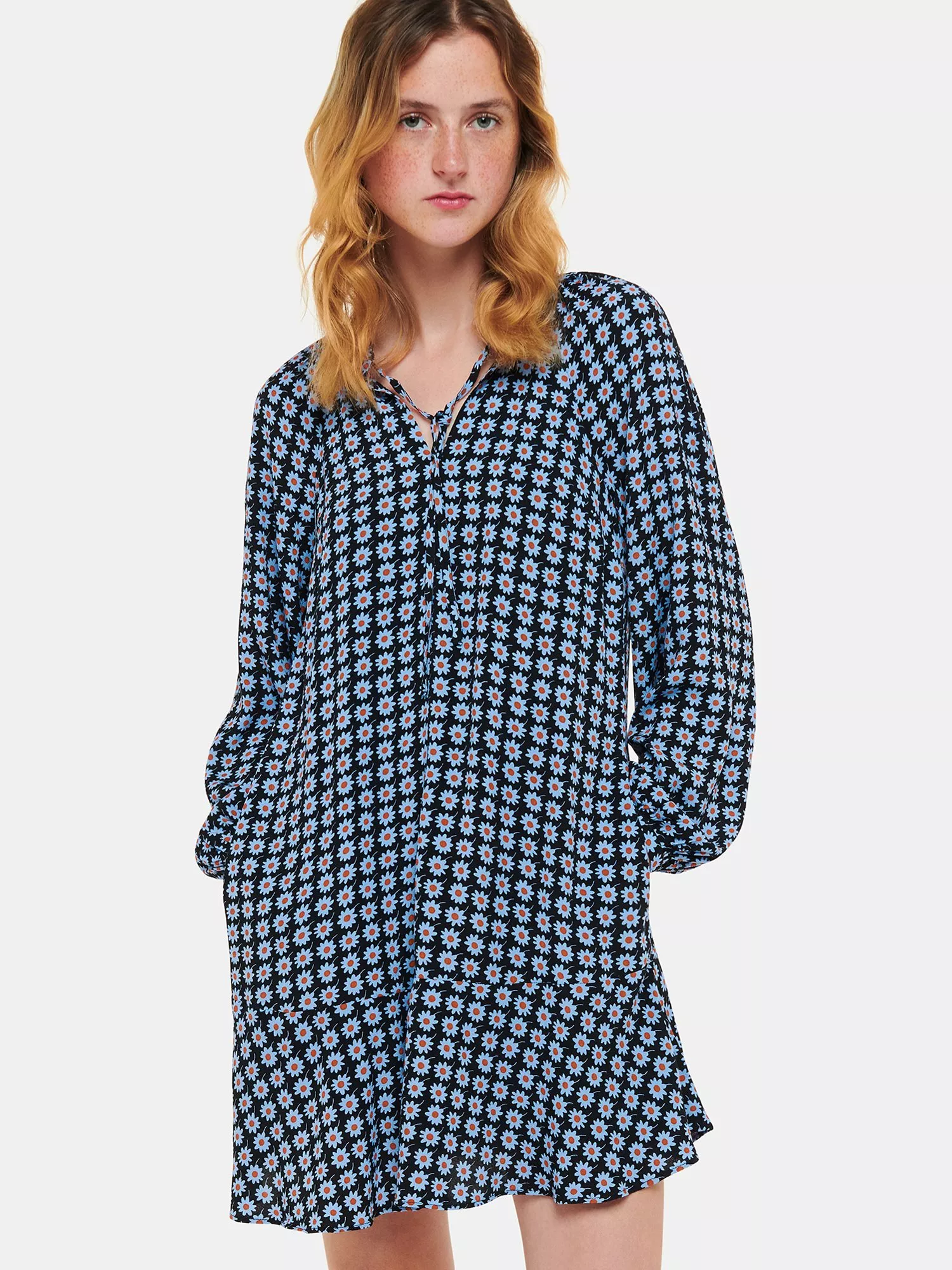 Designed in an easy to wear smock style, this mini dress from Whistles is dreamt up from a whisper-weight viscose blend. Effortlessly flattering thanks to a fuss-free v-neckline and three quarter length sleeves, it charms with ease thanks to the floral print.