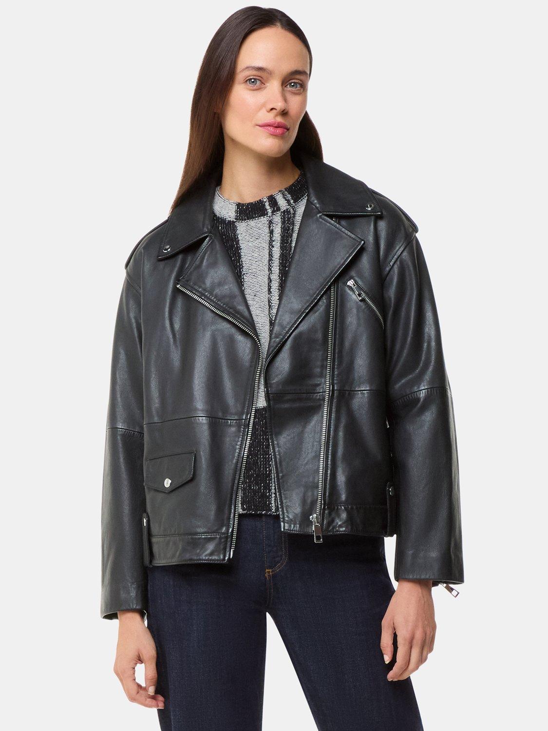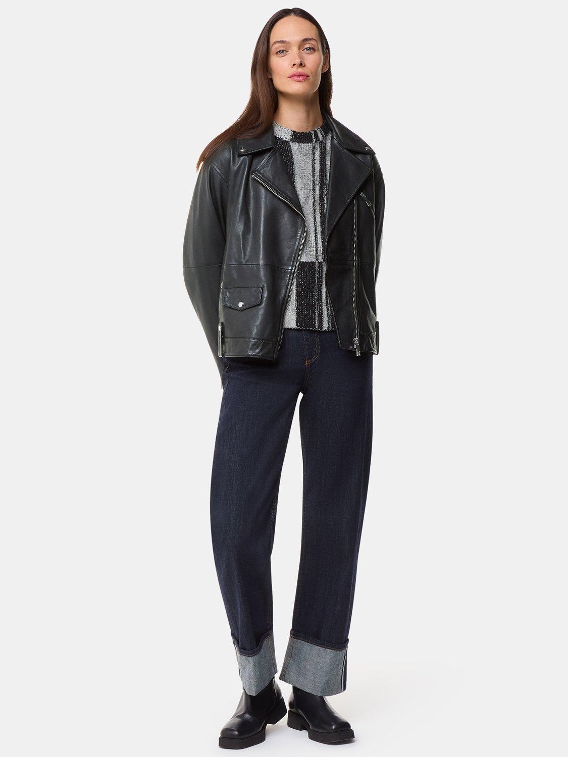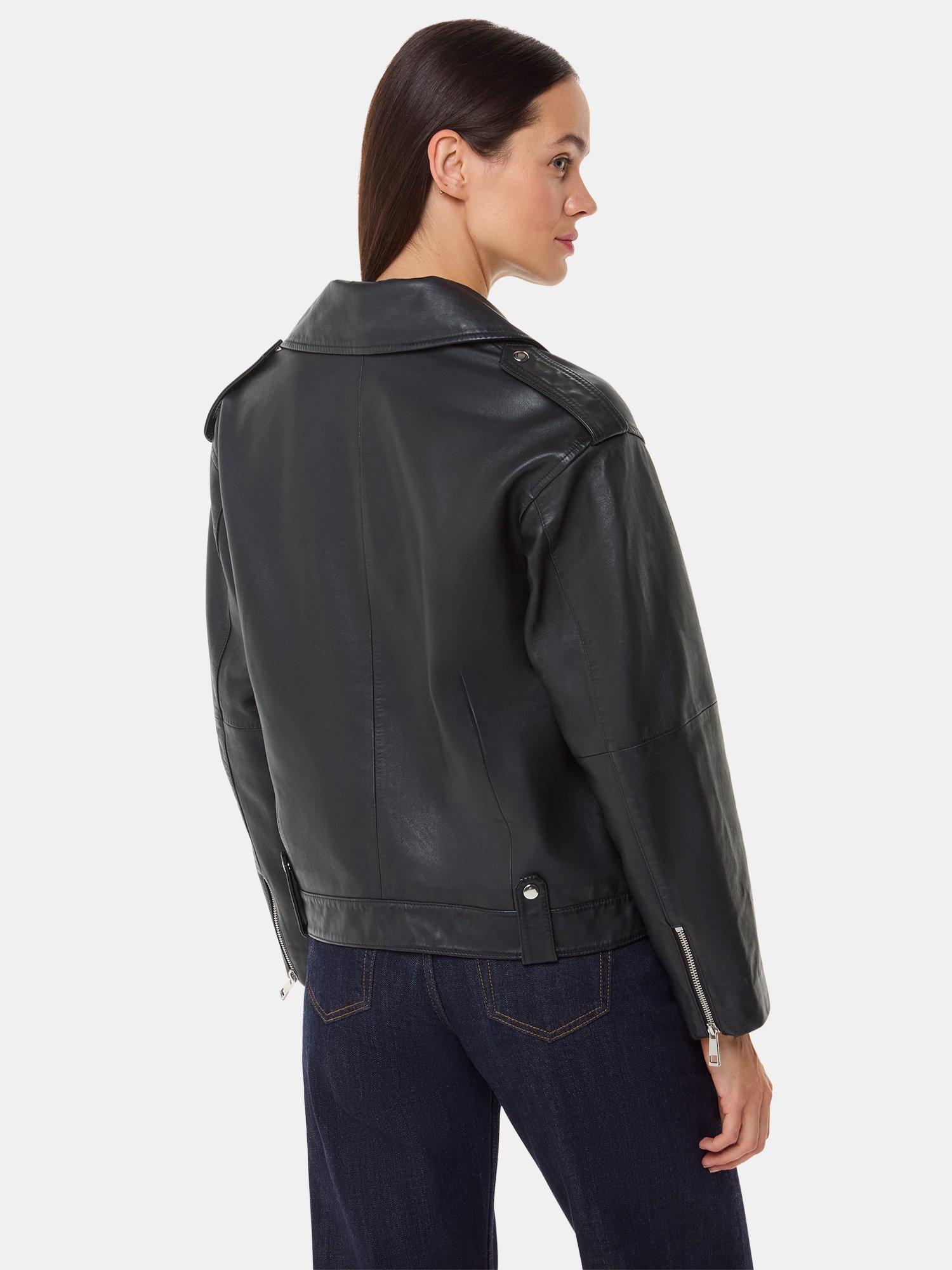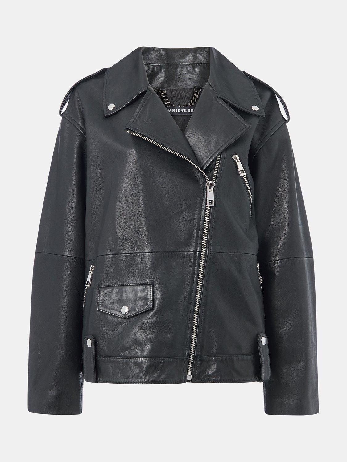 Made from pure leather that'll age beautifully with every wear, this boxy biker jacket by Whistles sits at the hips and is fastened with silver-toned zip detailing.
