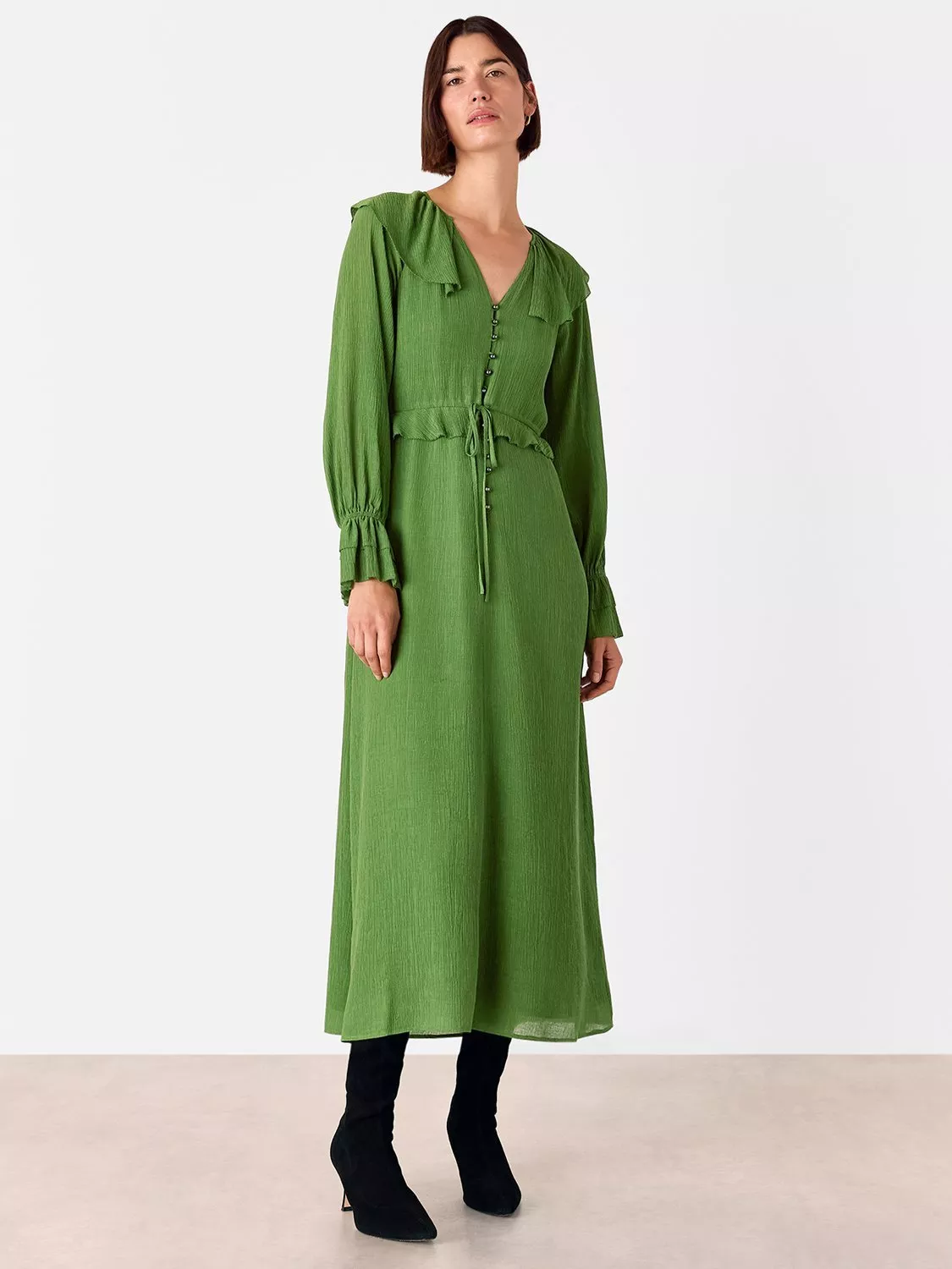 Step out in the Whistles fit-and-flare midi dress, expertly crafted in a soft viscose blend. Its regular fit and V-neck design promise all-day comfort, while long sleeves add extra versatility. Perfect for elevating your everyday look - style it your way.