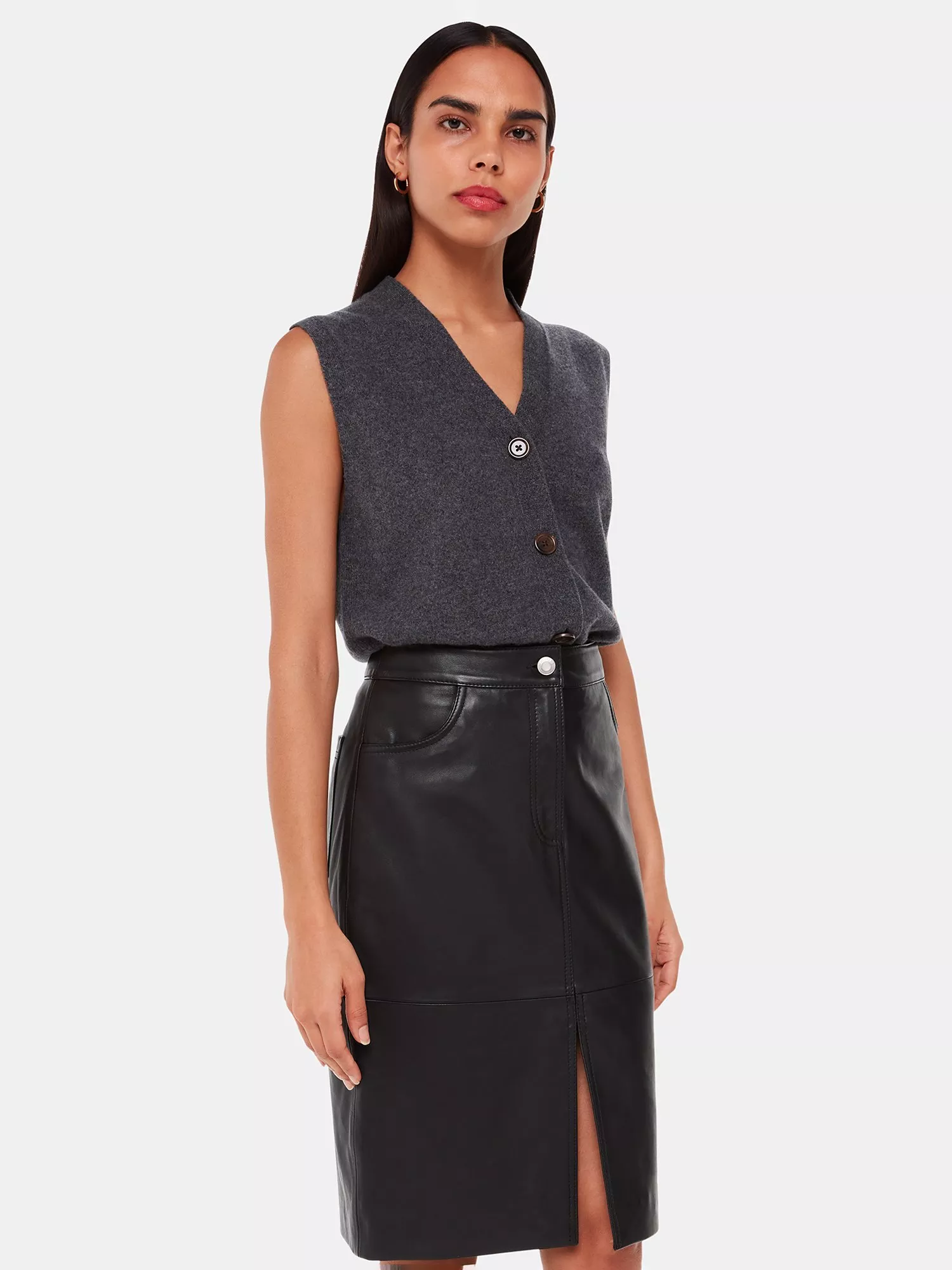 Made from smooth pure leather, this skirt from Whistles falls to the knee and features a front split detail.