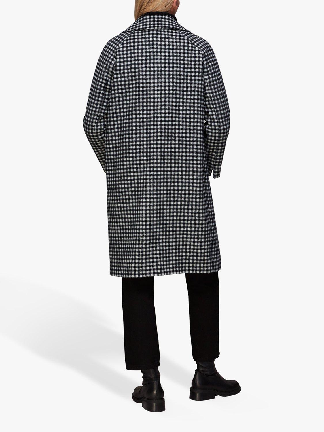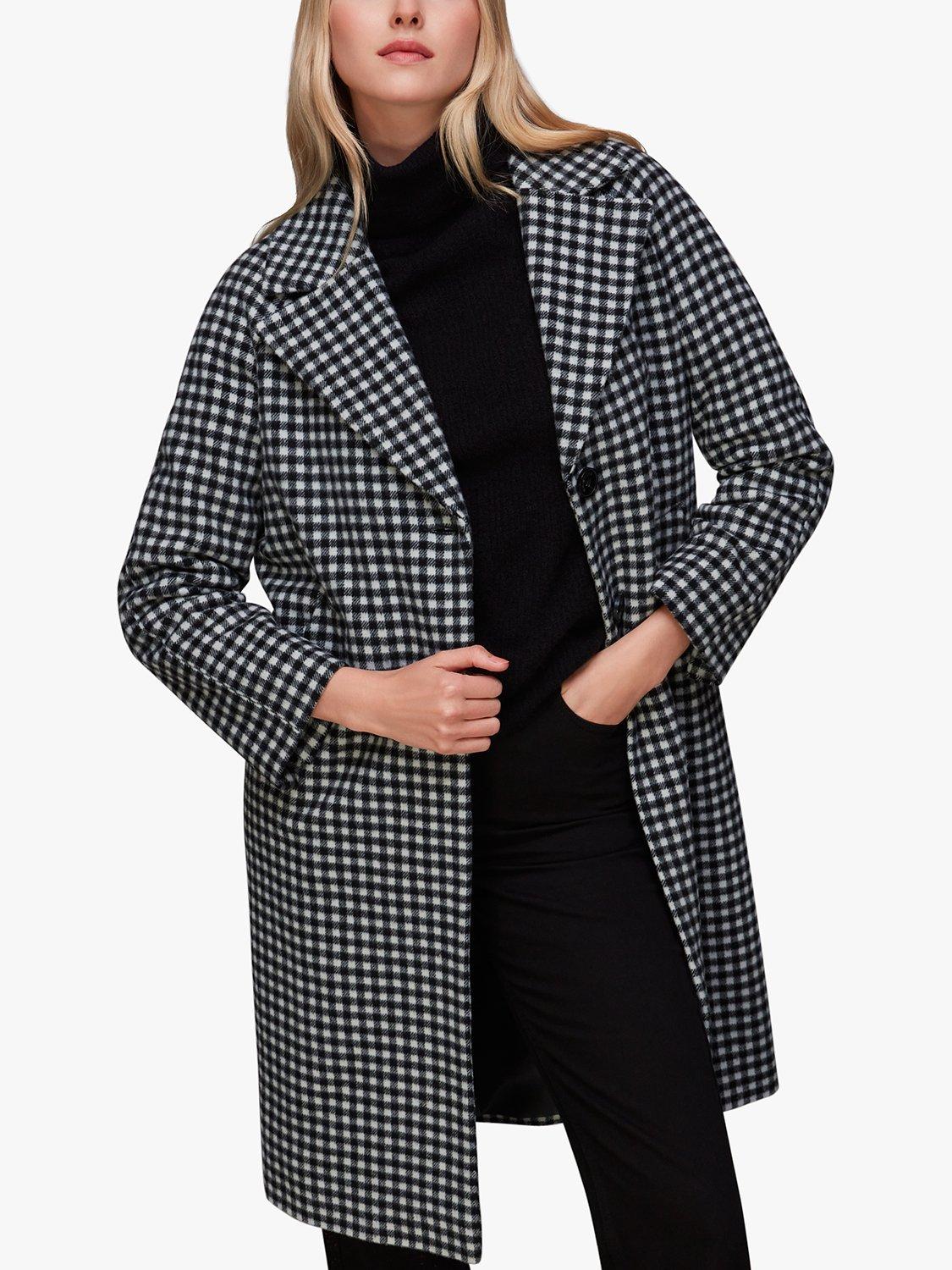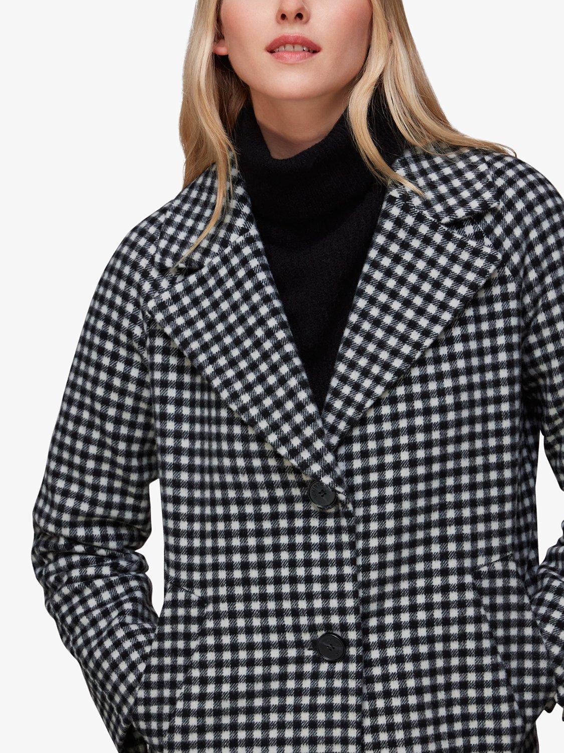 WhistlesGingham Wool Cocoon Coat, Black/Multi
